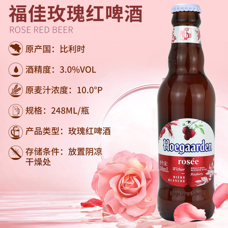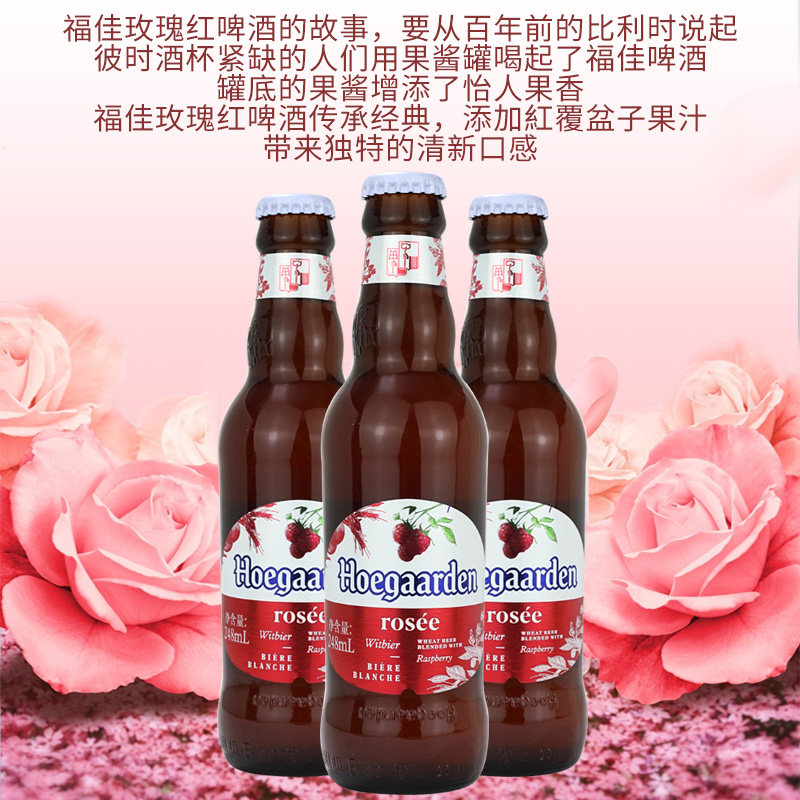 📚 Hoegaarden/福佳玫瑰红啤酒 比利时风味精酿白啤酒248ml*24瓶整箱