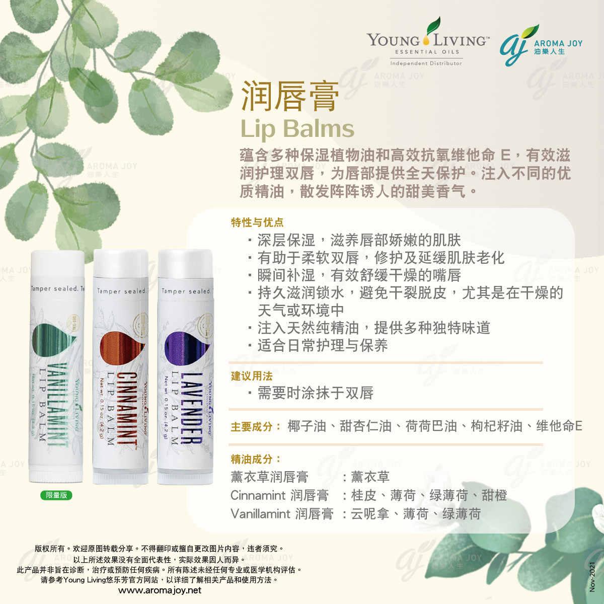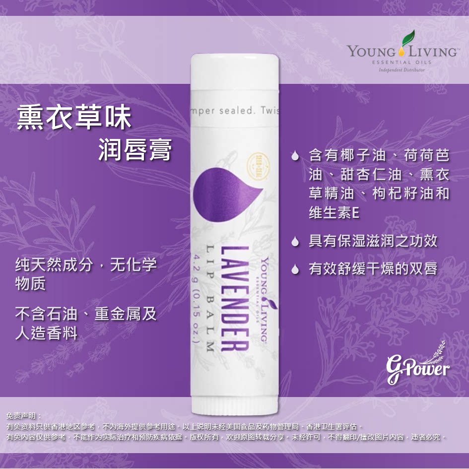 📚 美国Young living悠乐芳lavender lip balm薰衣草唇膏正紧致清洁