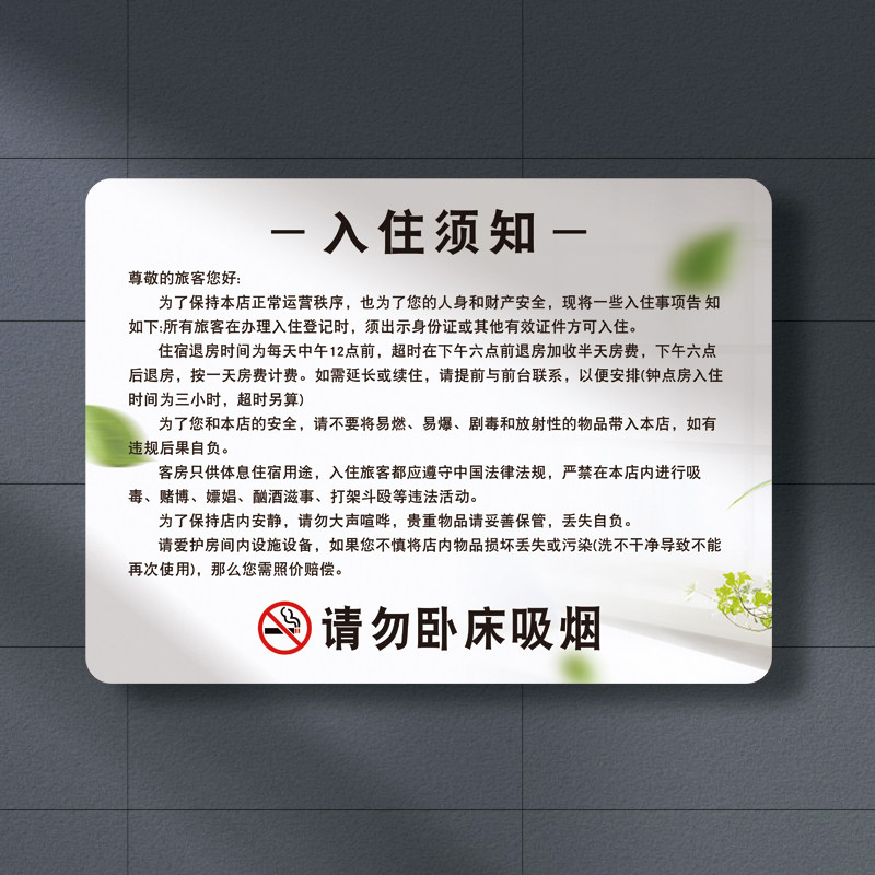 📚 酒店宾馆客房入住须知物品损坏价格表赔偿美容院亚克力提示标立牌