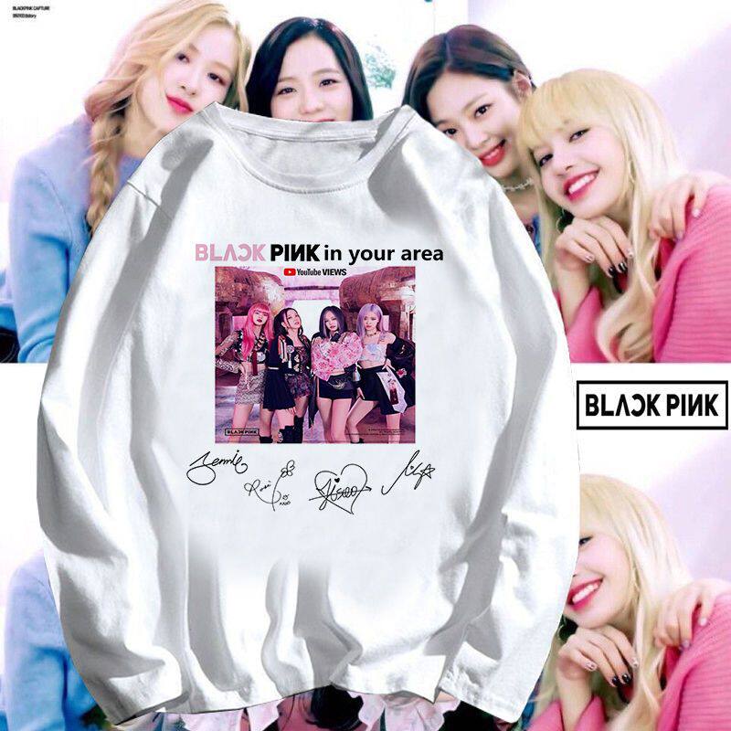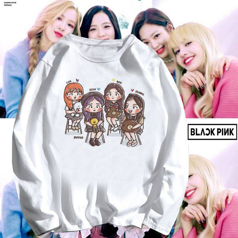 📚 blackpink粉丝周边同款韩女团粉墨Lisa应援打歌服长袖t恤学生上衣