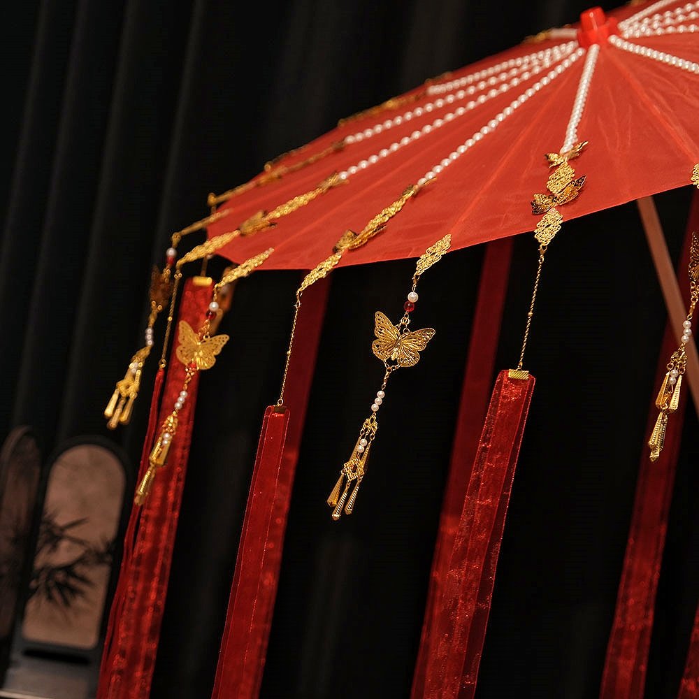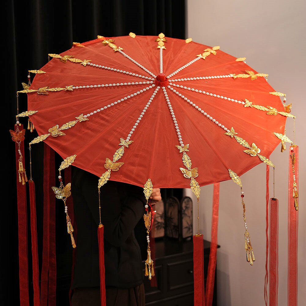 📚 中式手工喜字婚伞结婚新娘晨袍拍照道具婚礼出嫁油伞红伞婚庆用品
