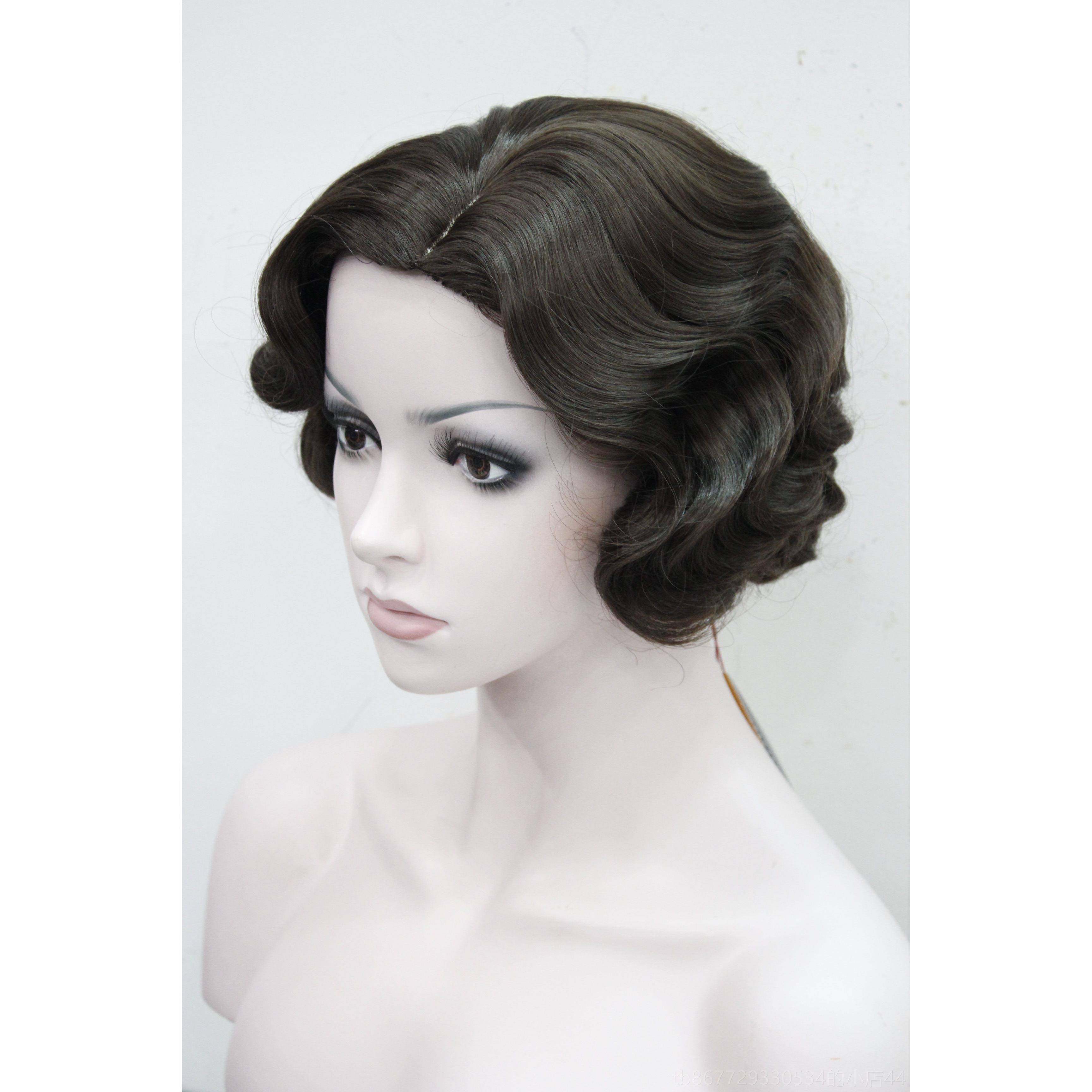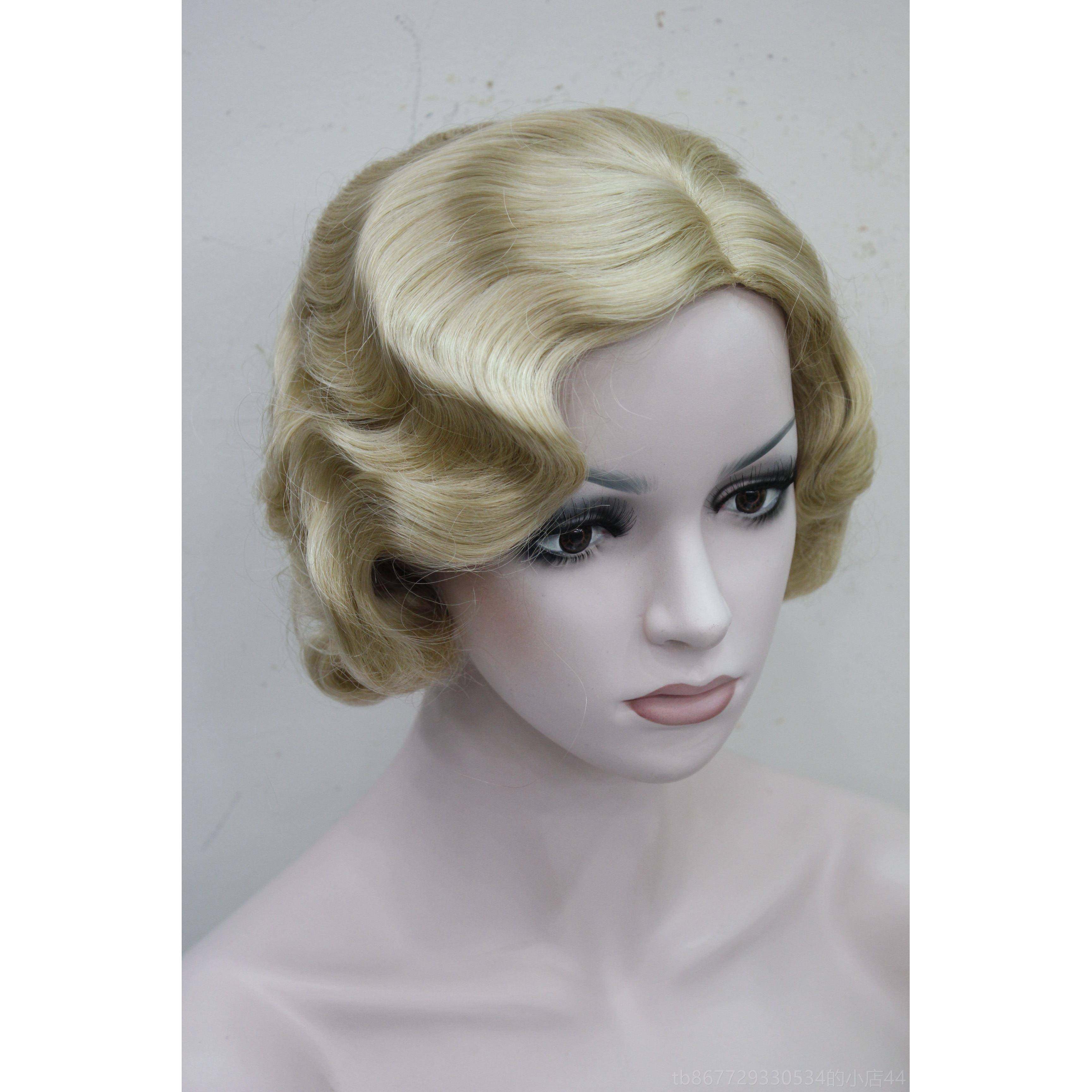 📚 高档假发女覆古旗袍头饰纹卷门罗民欧美上海滩香港风格写实金色中