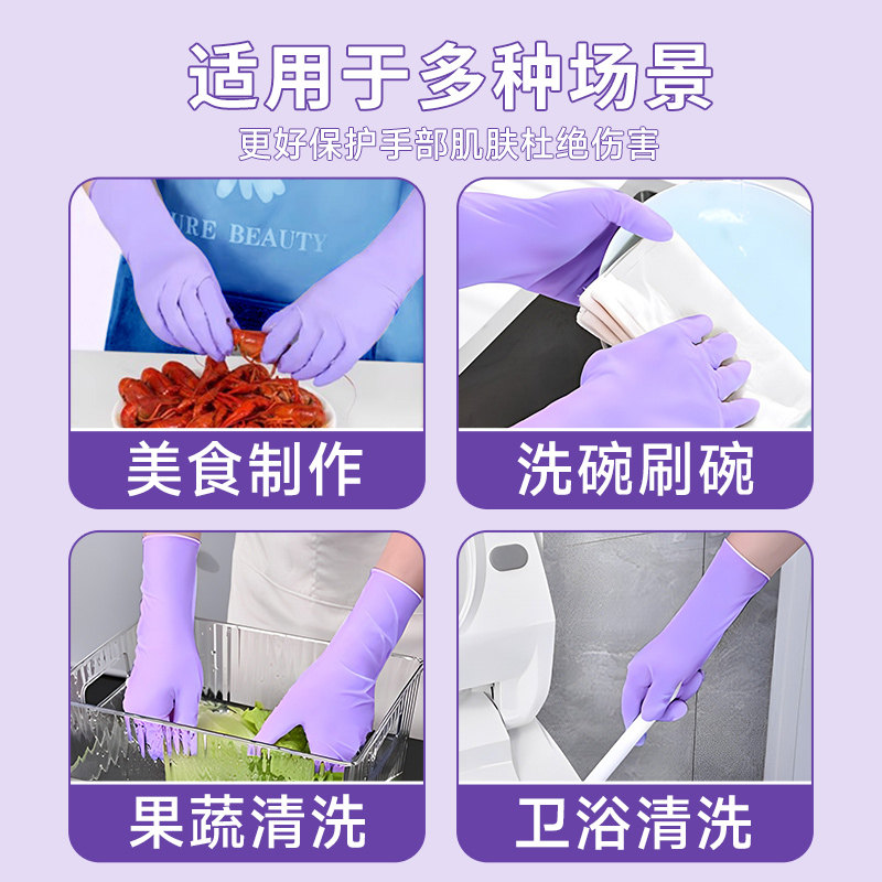📚 加长耐用一次性手套食品级专用丁腈乳胶橡胶防水家务洗碗厨房清洁