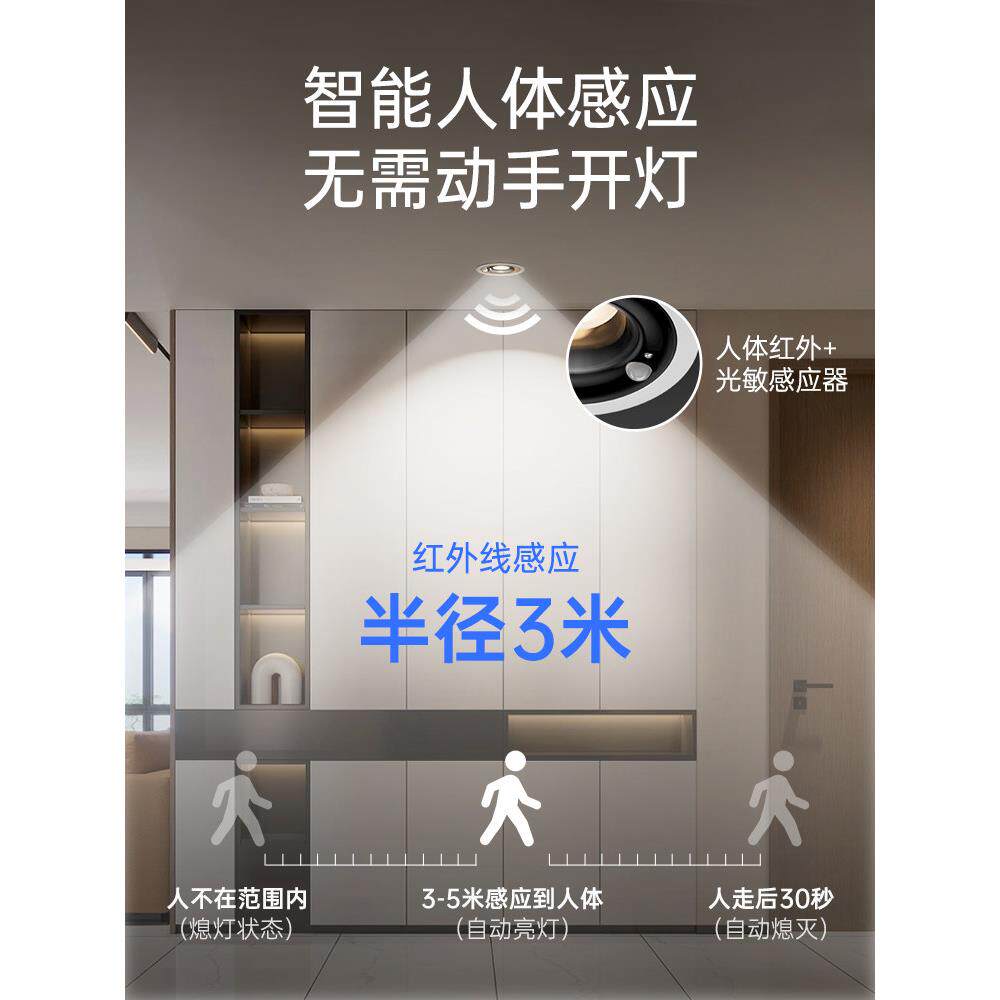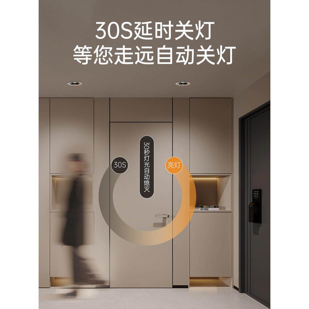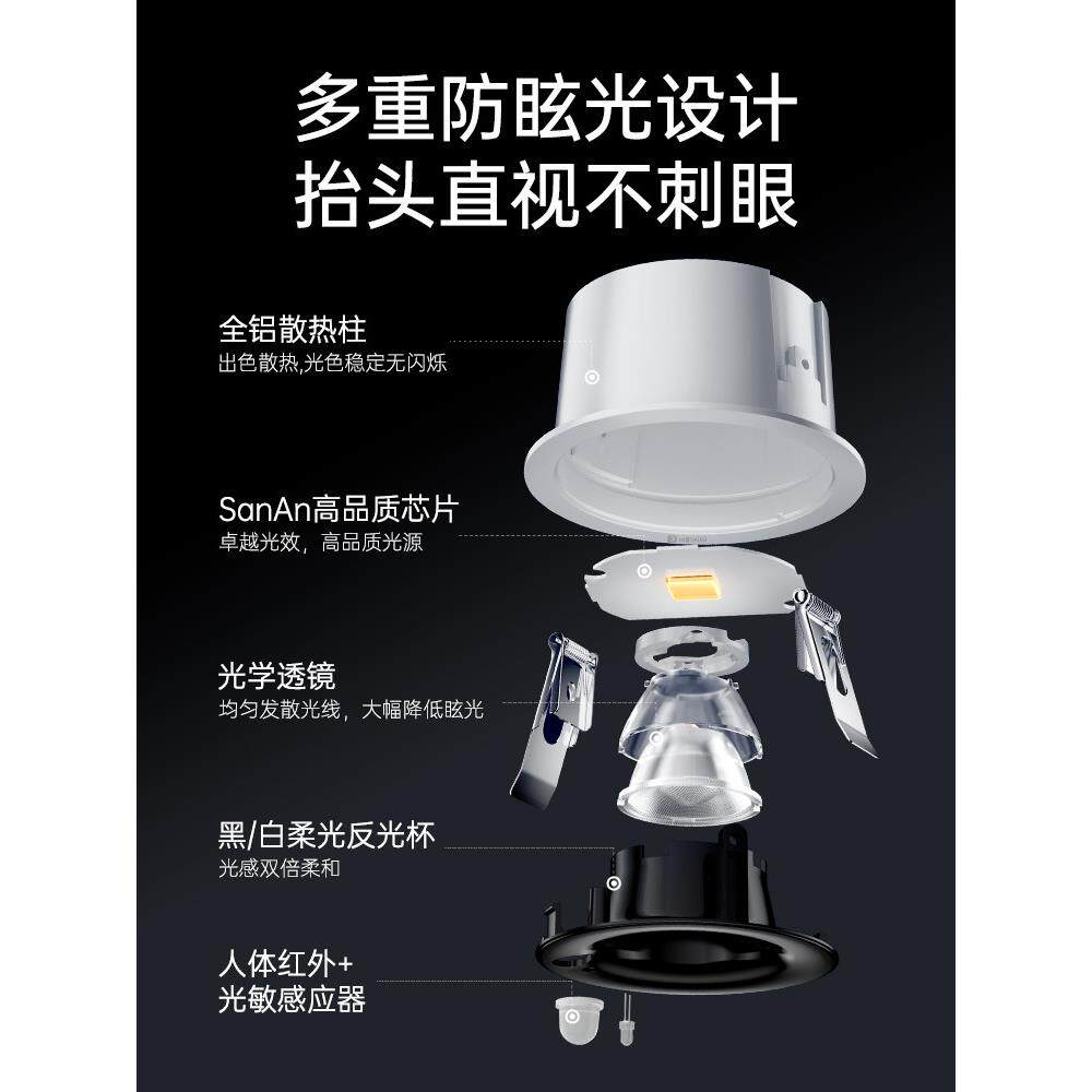📚 月影人体感应筒灯嵌入式75mm通道走廊入口门光敏红外防眩光护眼聚