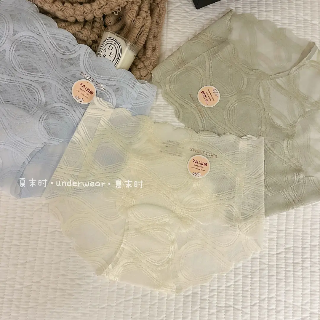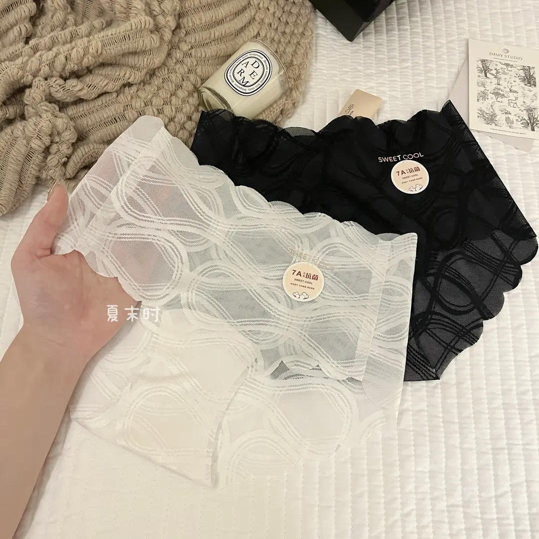 📚 夏末时轻奢高级感性感网纱无痕内裤女提花烫金字母透气中腰三角裤