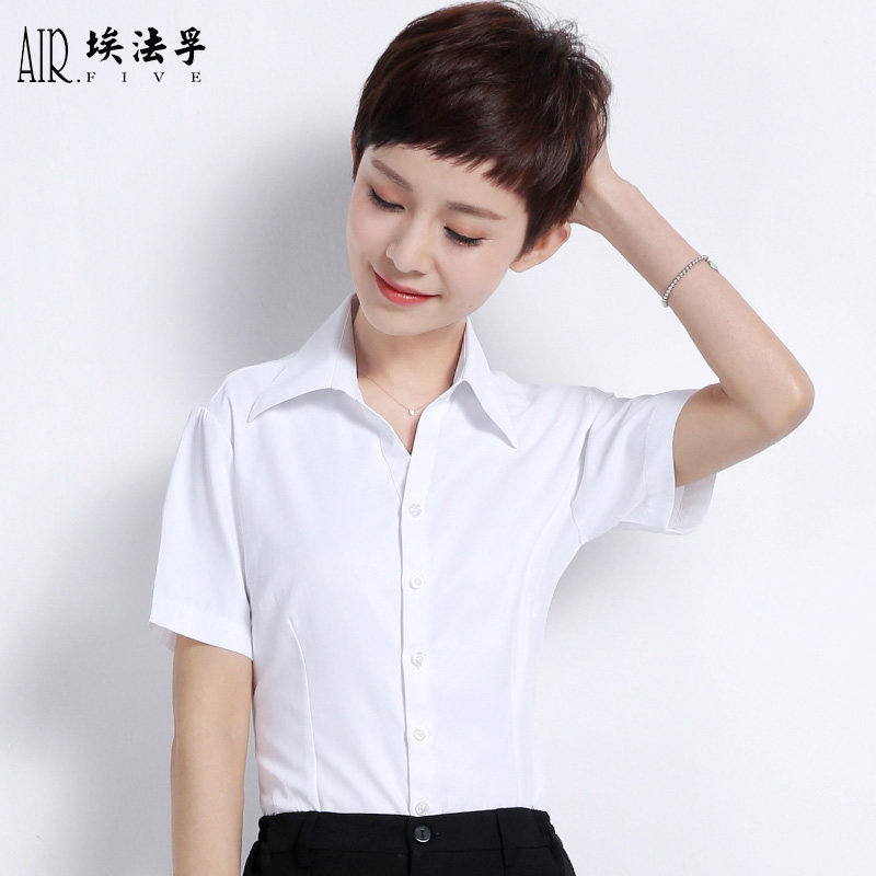 📚 AF新款商务职业正装夏季女士修身衬衫纯白色蓝色粉色短袖半袖衬衣