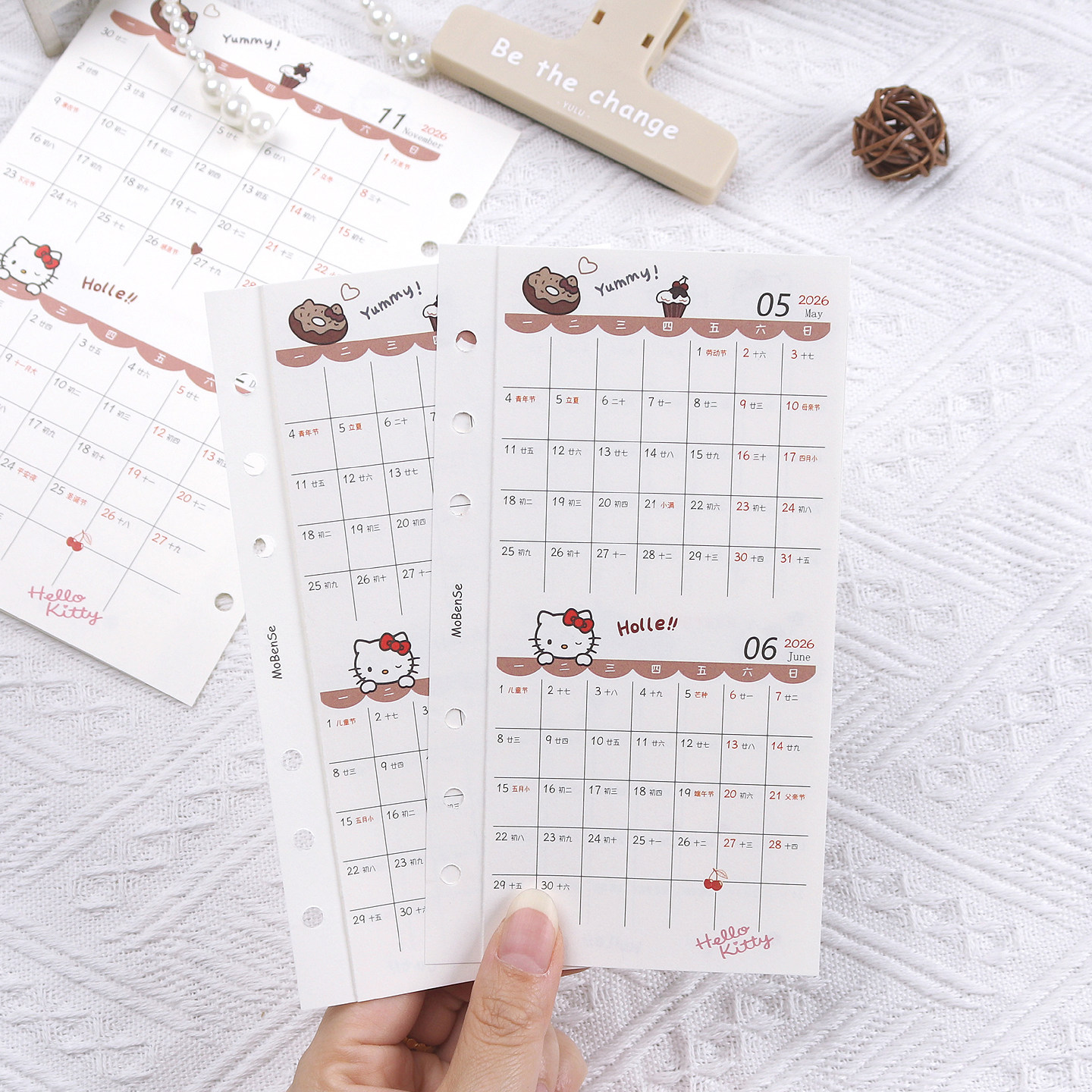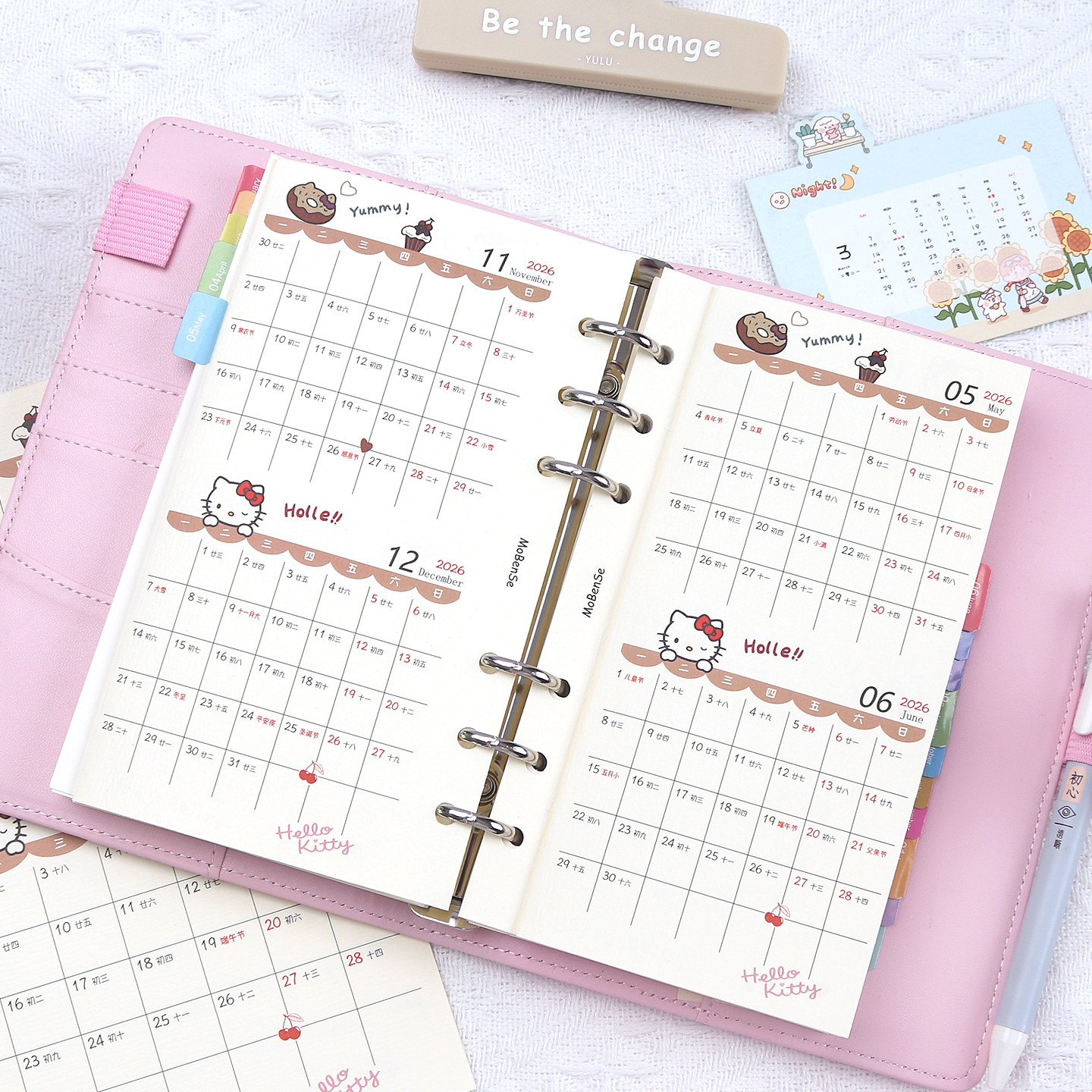 📚 2026年彩色三折年月历表活页夹扉页a6a5活页日历表打卡日期月计划