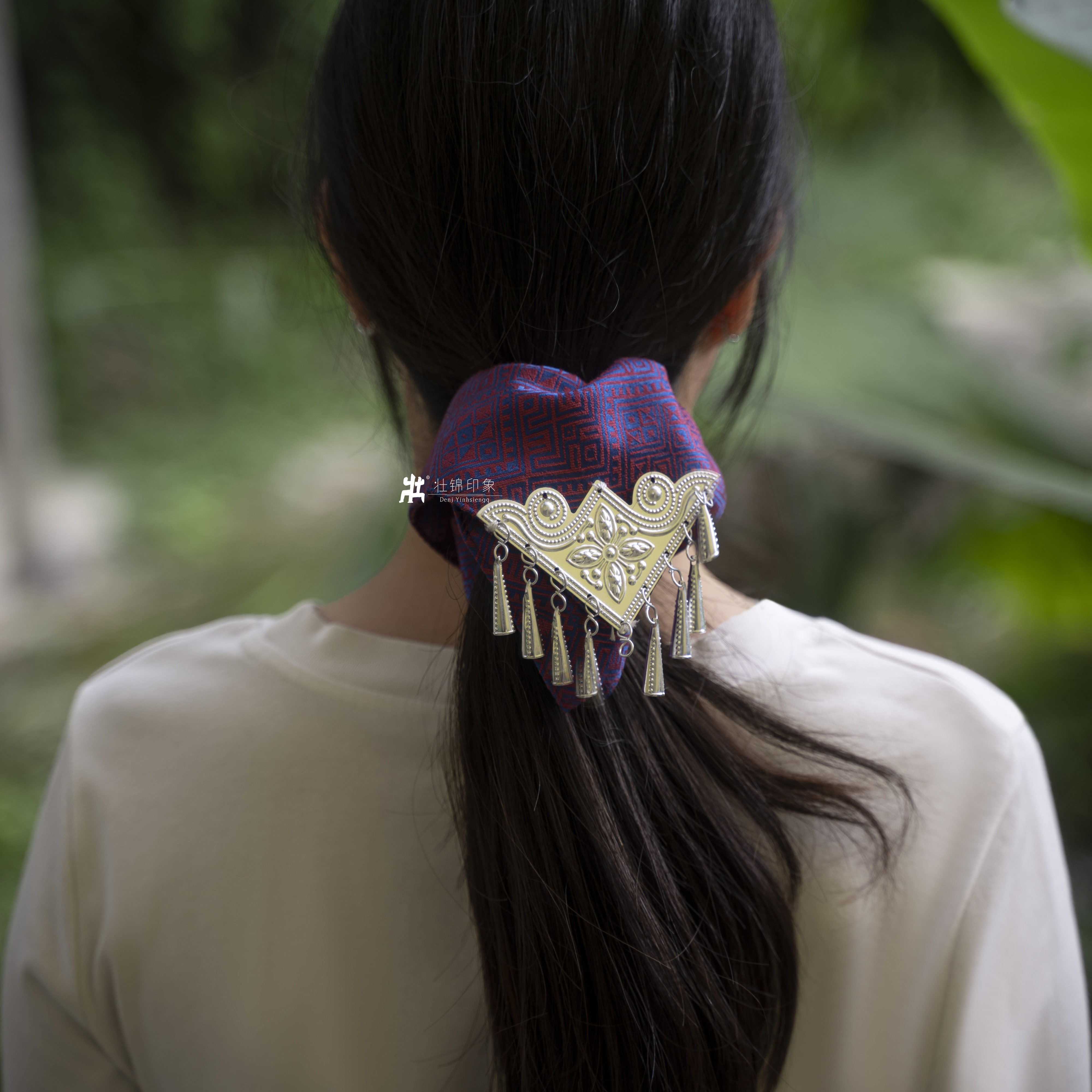 📚 广西壮锦苗银挂饰方巾发圈发饰广西非遗文创头饰传统流苏民族风