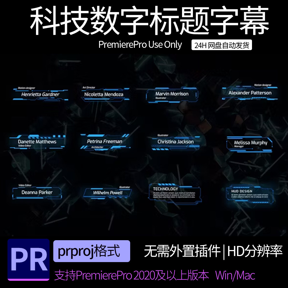 📚 PR科技字幕条模板 HUD企业介绍文字动画排版数字化标题PR模板