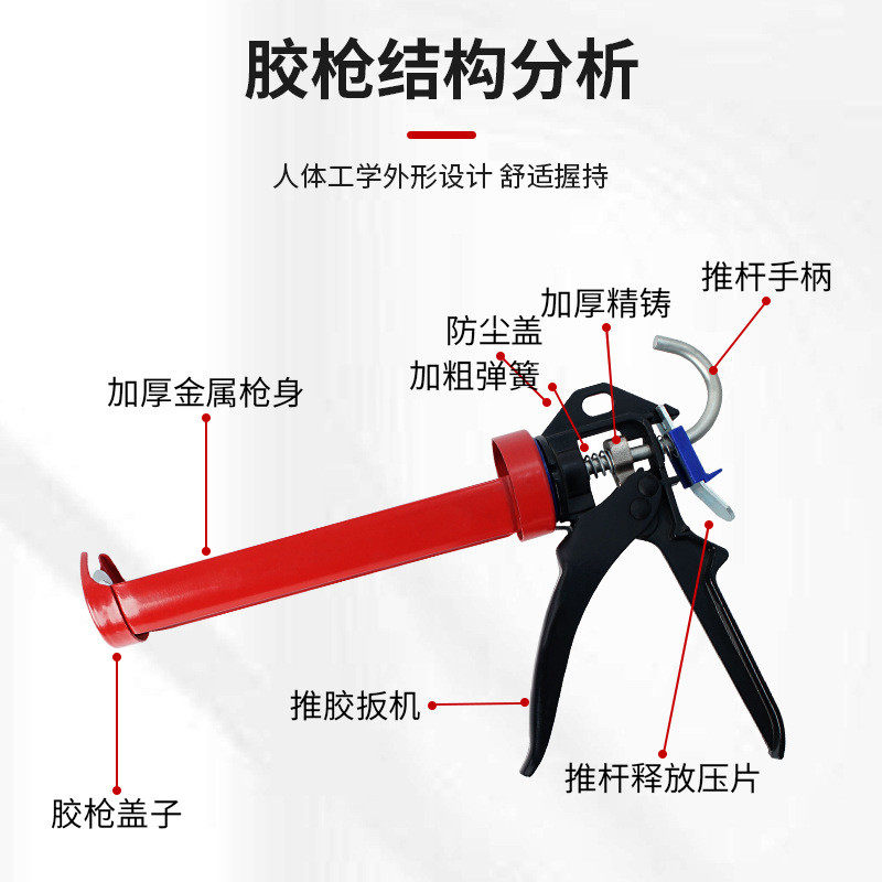 📚 粤美力手动硬支旋转结构胶枪工程施工防滴漏自动断胶玻璃硅胶枪