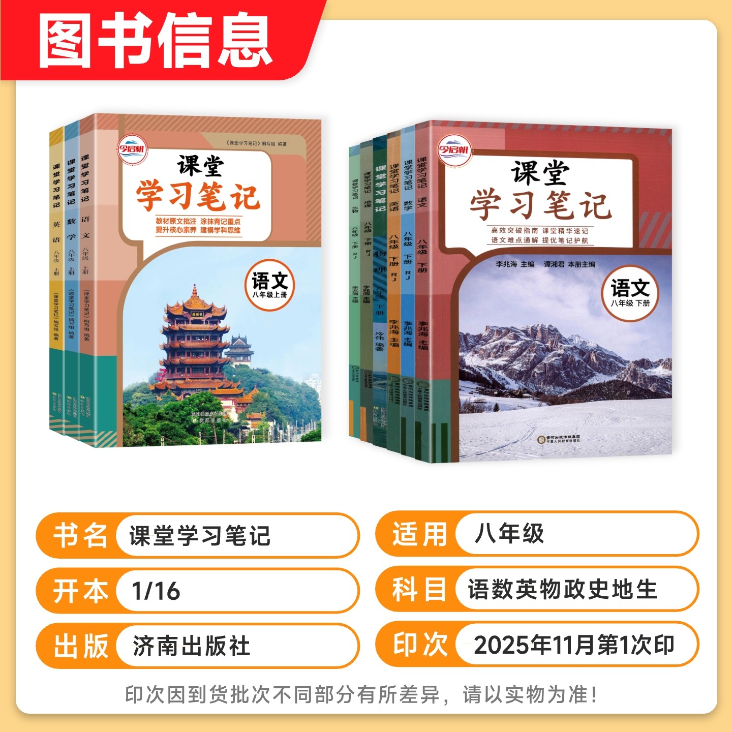 📚 2026春初中课堂笔记八年级下册数学华师大版北师沪科版语文人教英语外研物理苏科沪粤初二上册同步课本教材全解预复习伴学笔记