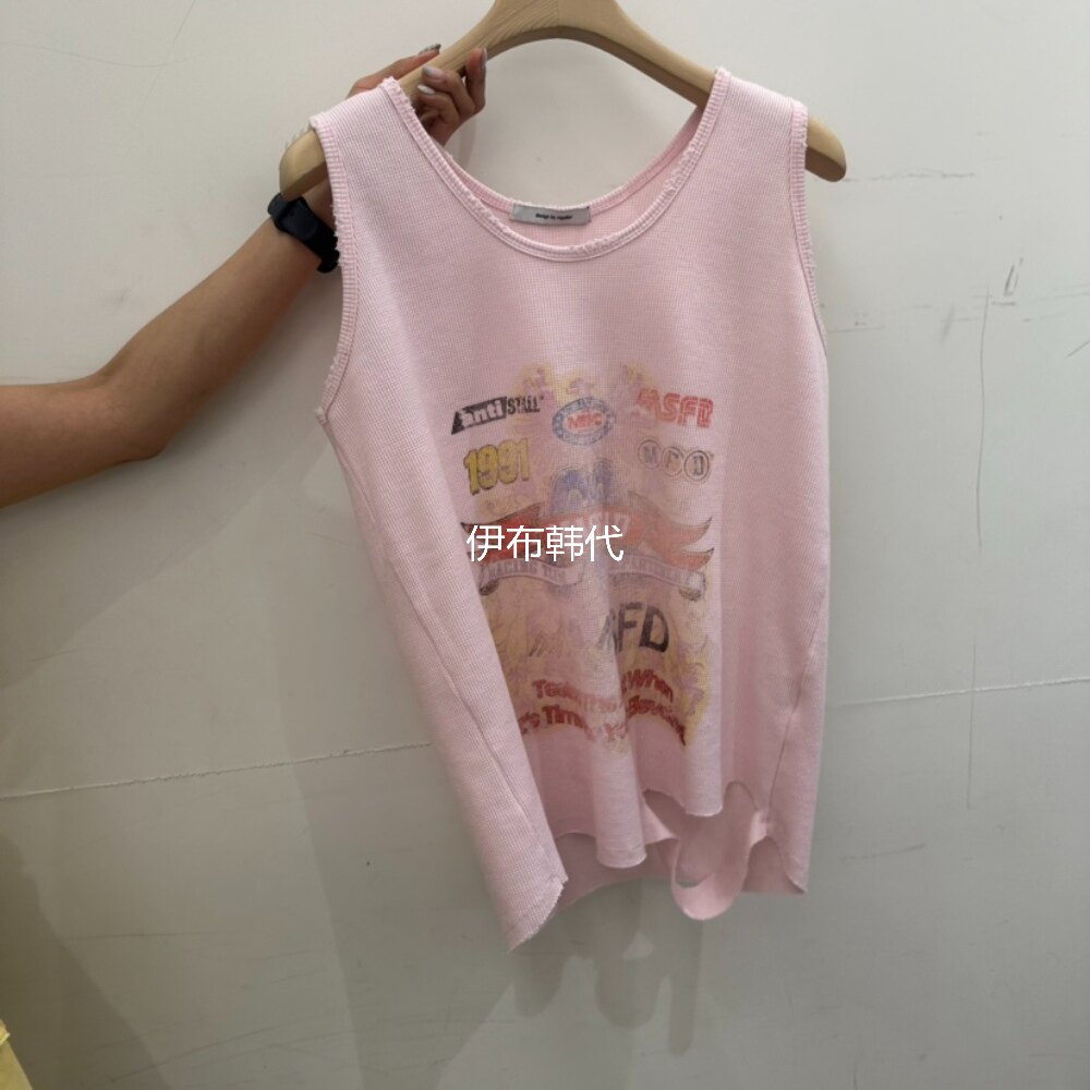 📚 REPELLER韩国东大门正品代购26夏款 圆领磨破做旧拉丝休闲背心
