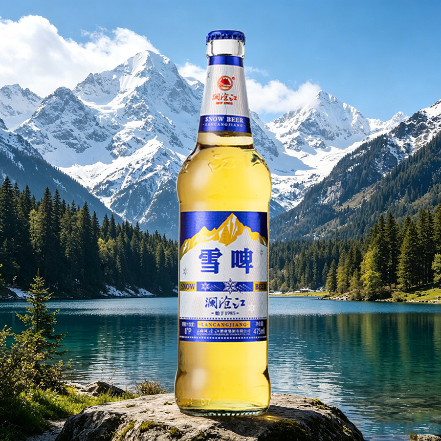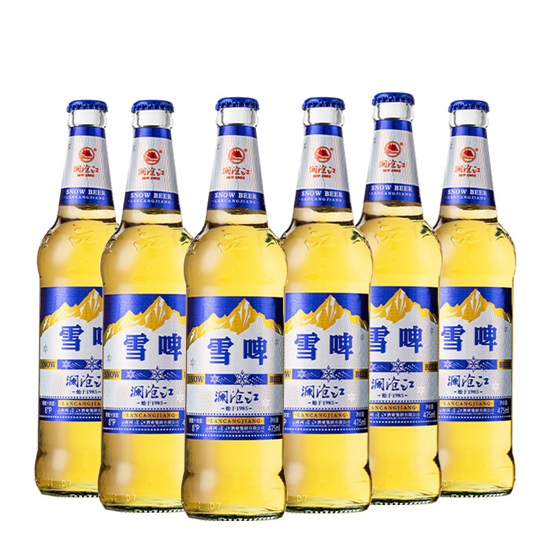 📚 澜沧江啤酒雪啤475ml*6瓶装云南特产澜沧江啤酒烧烤火锅店大瓶装