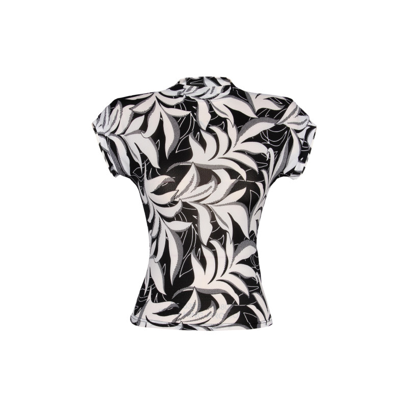 📚 XULU原创简约水晶麻纱印花上衣气质性感短款小立领打底衫
