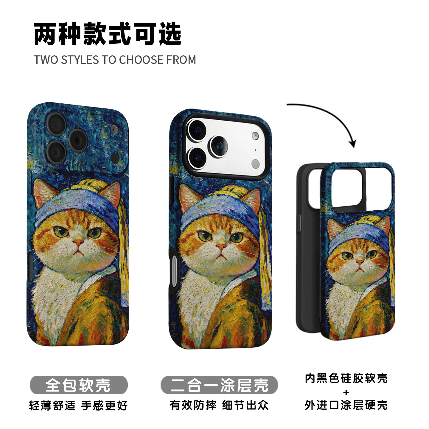 📚 【不好惹CP】油画拽酷猫咪适用iPhone17/16promax手机壳华为P70苹果13红米k60情侣vivos20软opporeno12畅享70