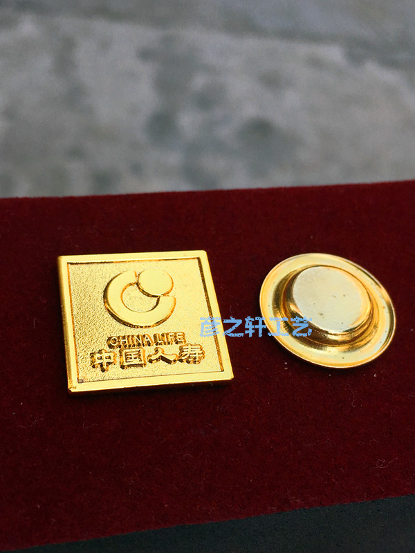 📚 中国人寿司徽无别针磁石款方式胸针工牌金色胸章满99包邮