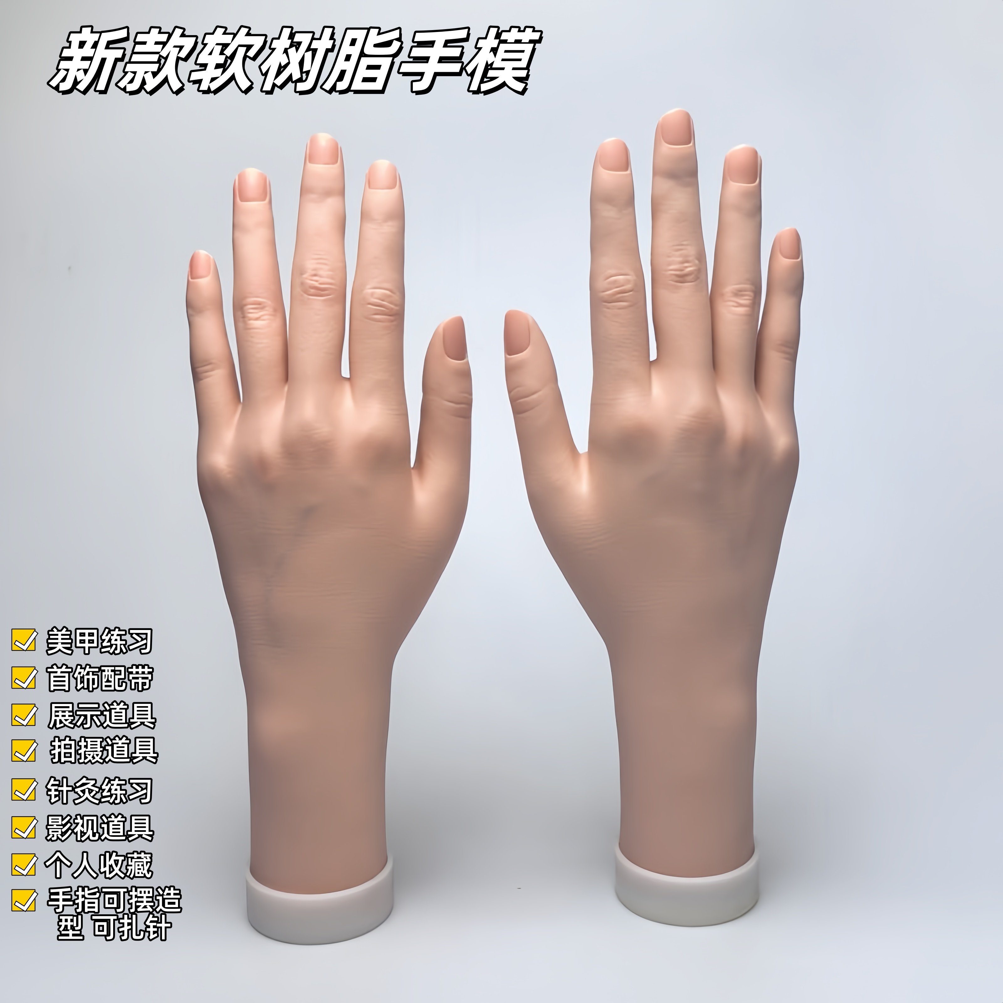 📚 手模道具成人女士手模手镯手套戒指手链展示手模型肤色软款仿真
