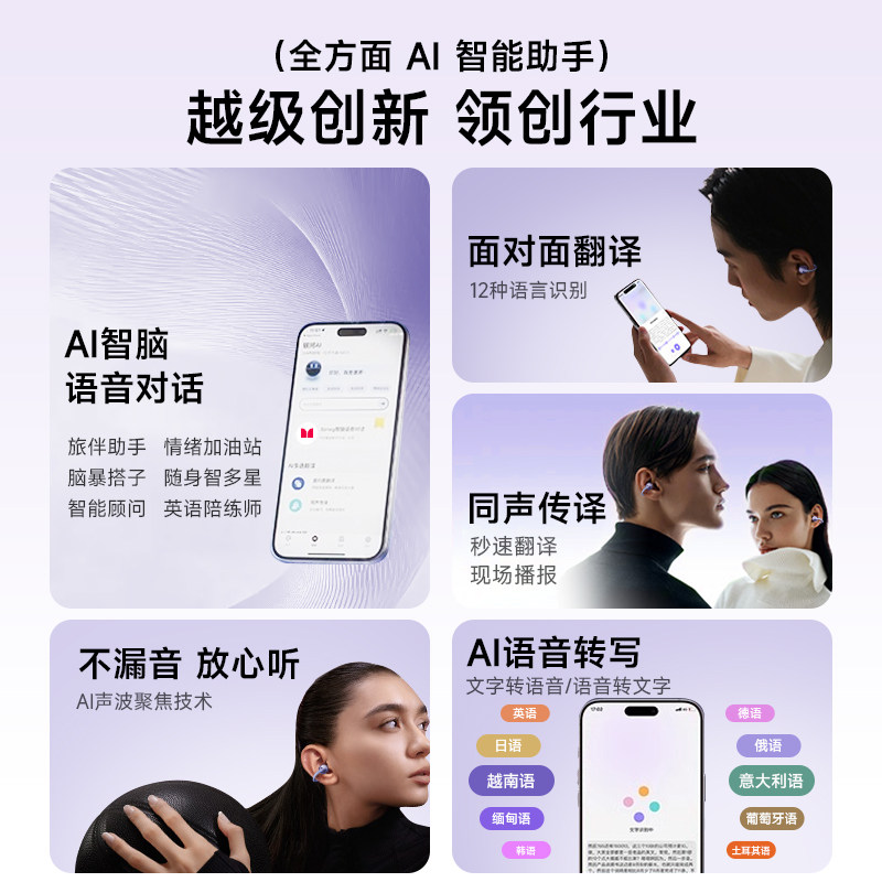 📚 AI实时翻译蓝牙耳机2025新款耳夹式无线开放不入耳骨传导运动跑步