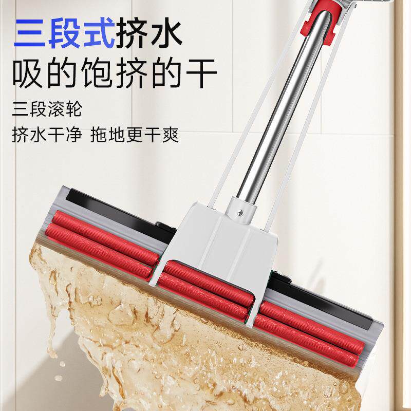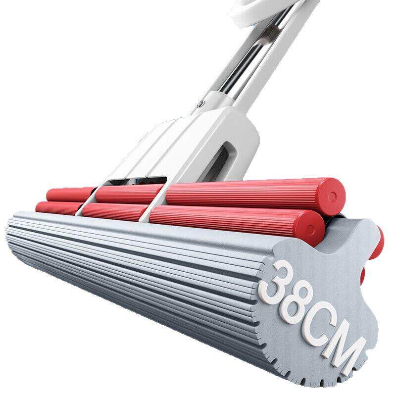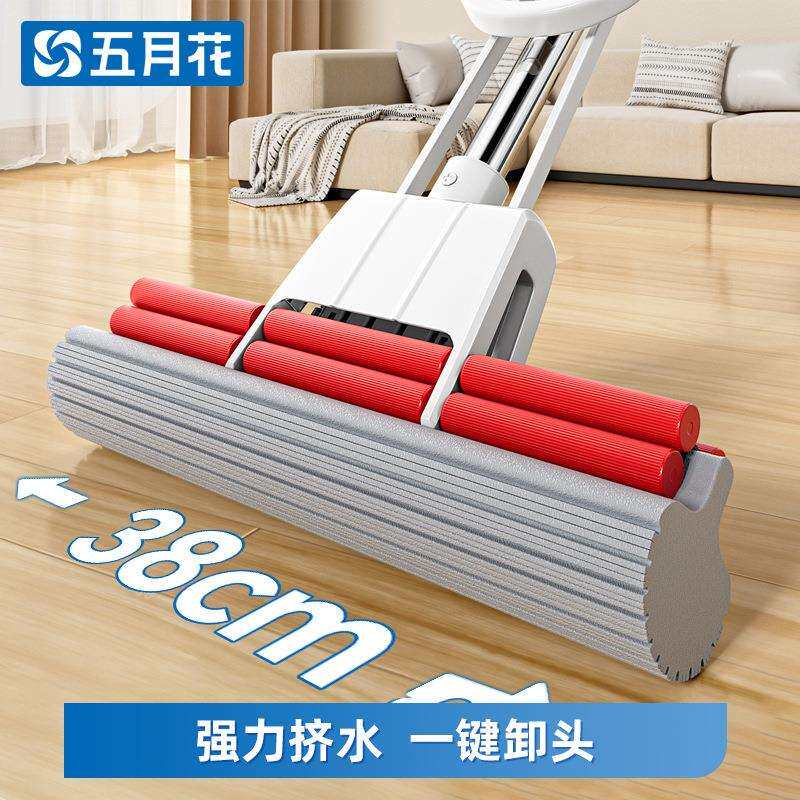 📚 五月花 38cm大号滚轮式挤水胶棉拖把 海绵拖布免手洗拖地神器