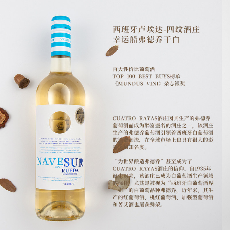📚 WE百大性价比葡萄酒四纹酒庄幸运船弗德乔干白西班牙原瓶进口