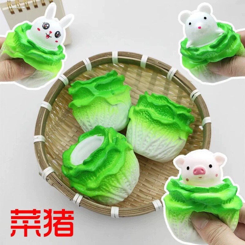 📚 白菜猪挤压杯胡萝卜小兔子捏捏乐解压玩具老鼠婴儿宝宝手捏球奇葩
