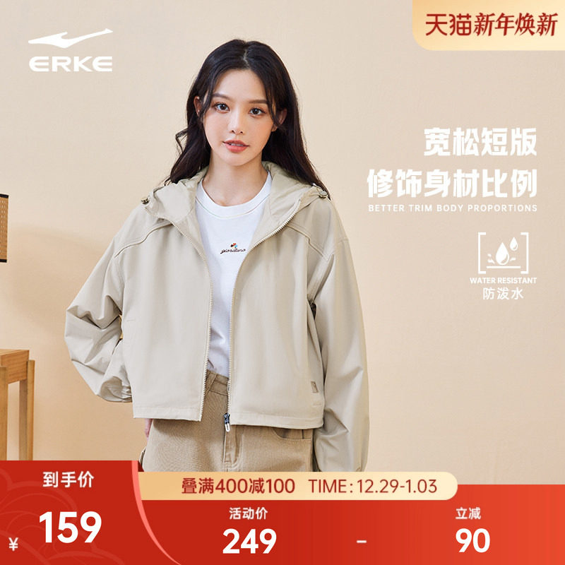 💥种草!鸿星尔克冬季女士运动服连帽防泼水防风衣🔥