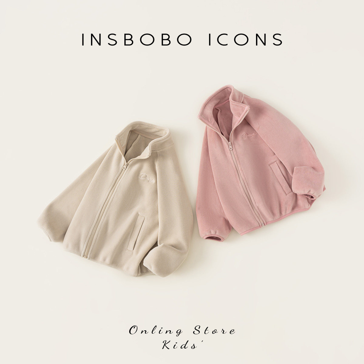 📚 INSbobo儿童外套2026新款女童毛绒上衣春装男童衣服拉链外衣童装