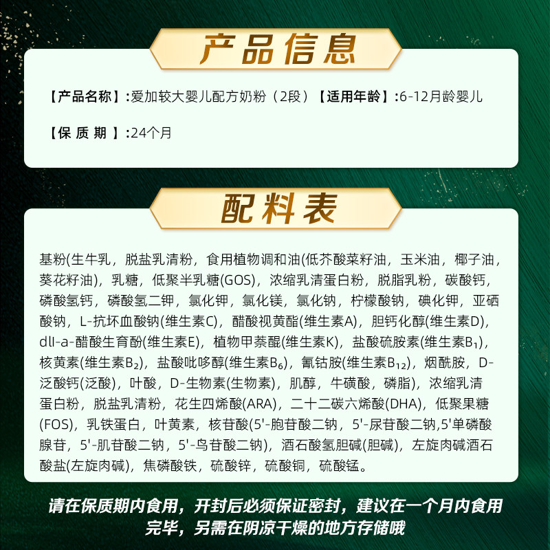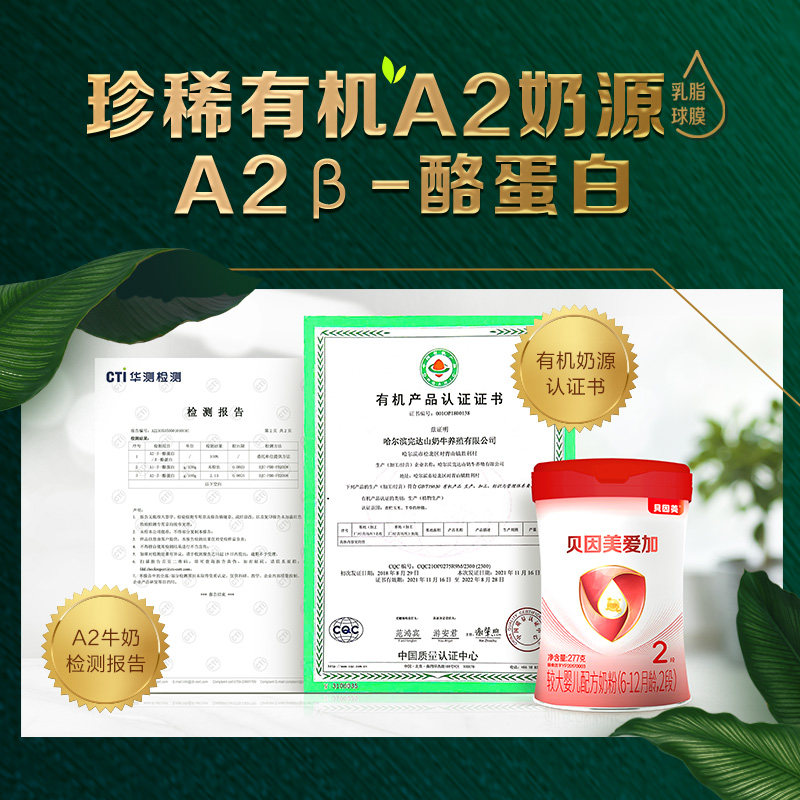 📚 贝因美爱加有机A2奶源婴幼儿配方奶粉2段277g*2罐含OPN活性蛋白