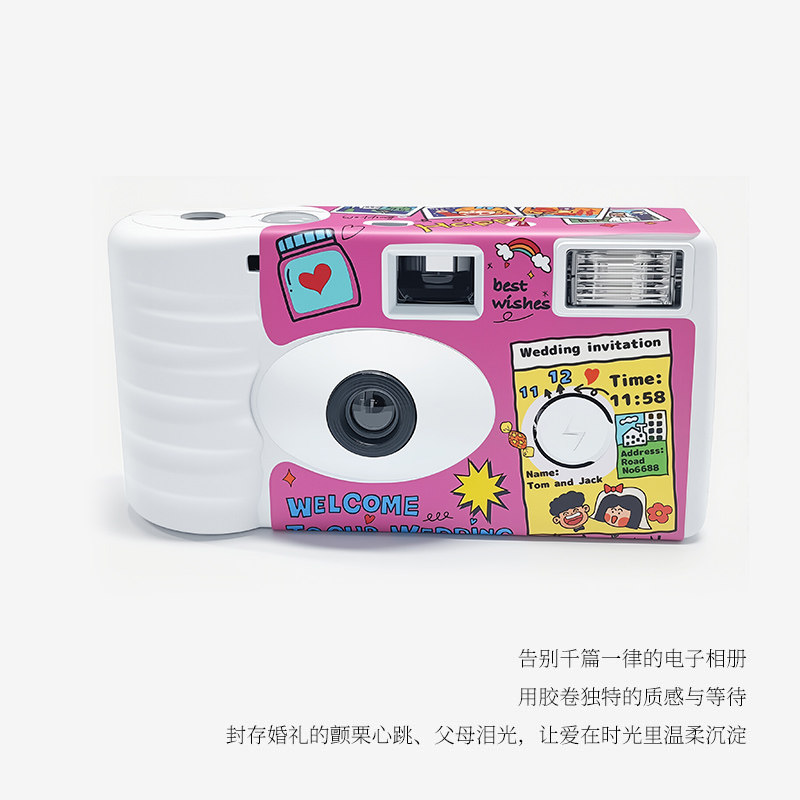 📚 婚礼原创插画易拍一次性胶片相机彩色胶卷带闪光灯婚礼伴手礼物