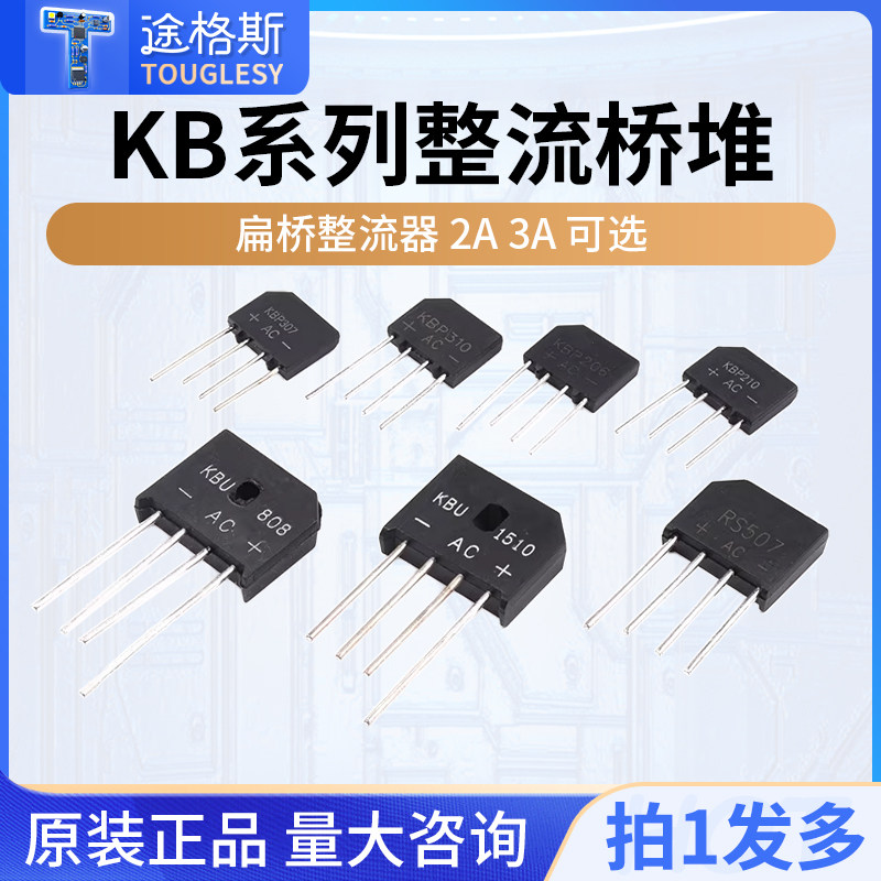📚 整流桥KBP307/310/206/210 2A3A KBU808/1510 RS507扁桥整流器