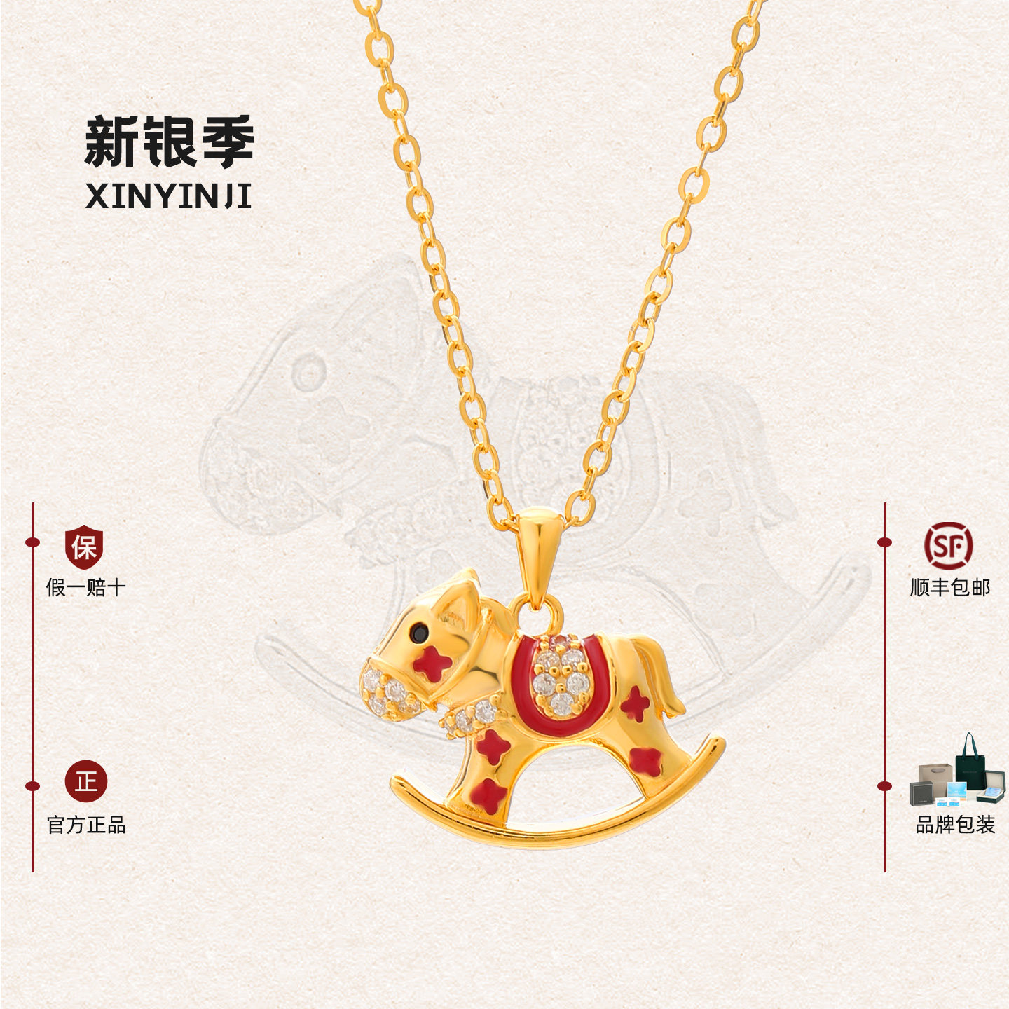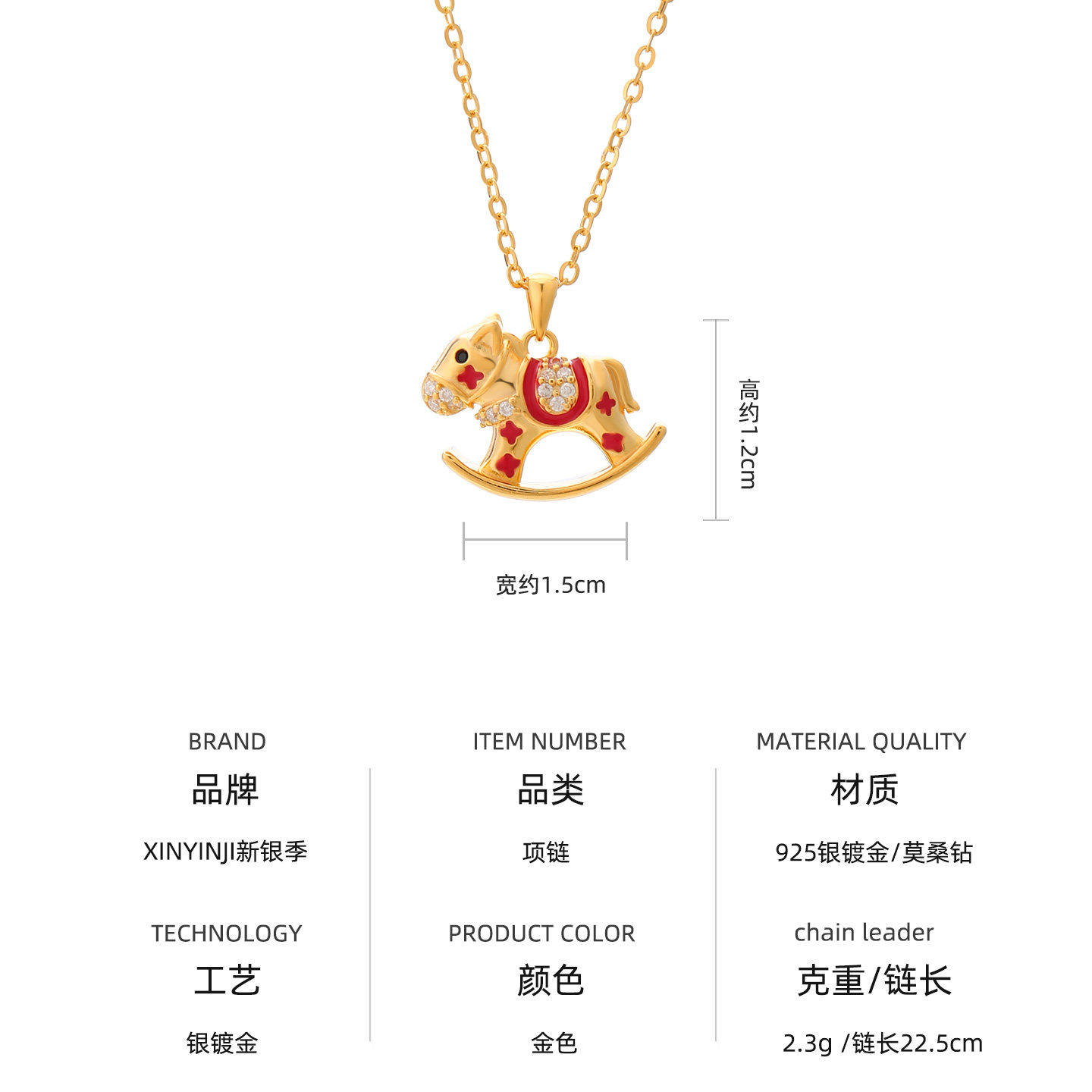 📚 纯银镀黄金小马项链本命年吊坠女马上有钱挂坠新年礼物38女神开春