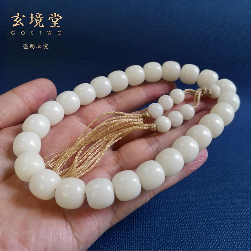 📚 精品白菩提根老型桶珠24颗手持麻绳念珠12/13/14mm男女佛珠手串链