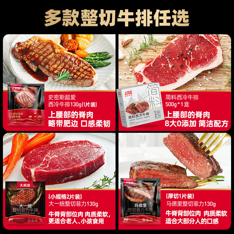 📚 大希地家用整切牛排10片儿童黑椒牛肉菲力西冷牛扒套餐官方旗舰店