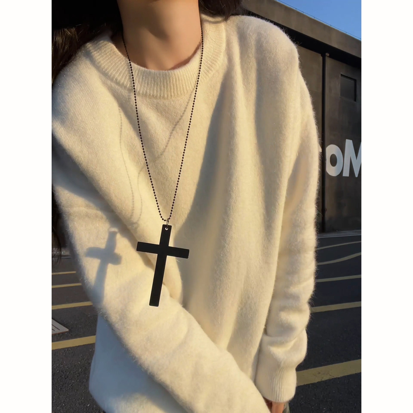 📚 美式白色圆领加绒毛衣冬季男款保暖上衣韩系慵懒风重磅内搭打底衫