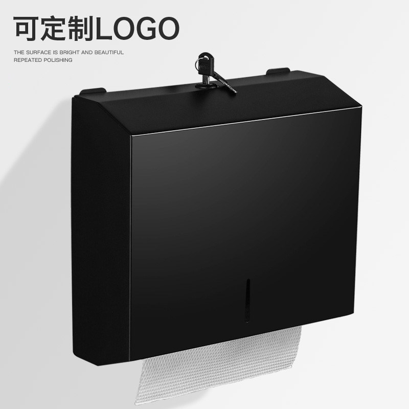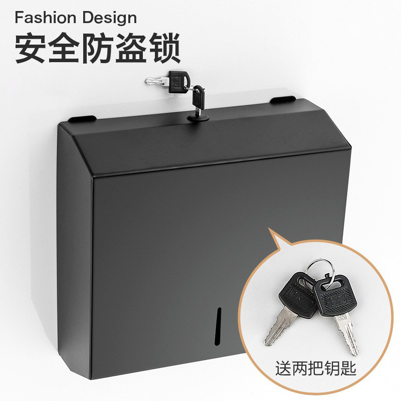 📚 黑色不锈钢厕所大卷纸盒公共卫生间擦手纸盒酒店壁挂式大盘纸巾架