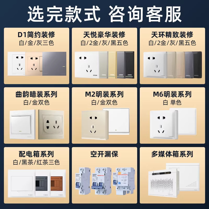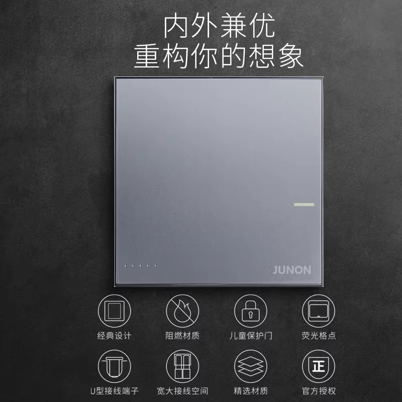 📚 俊朗开关插座D1岩灰色JUNON官方正品无边框大面板暗装家用套餐