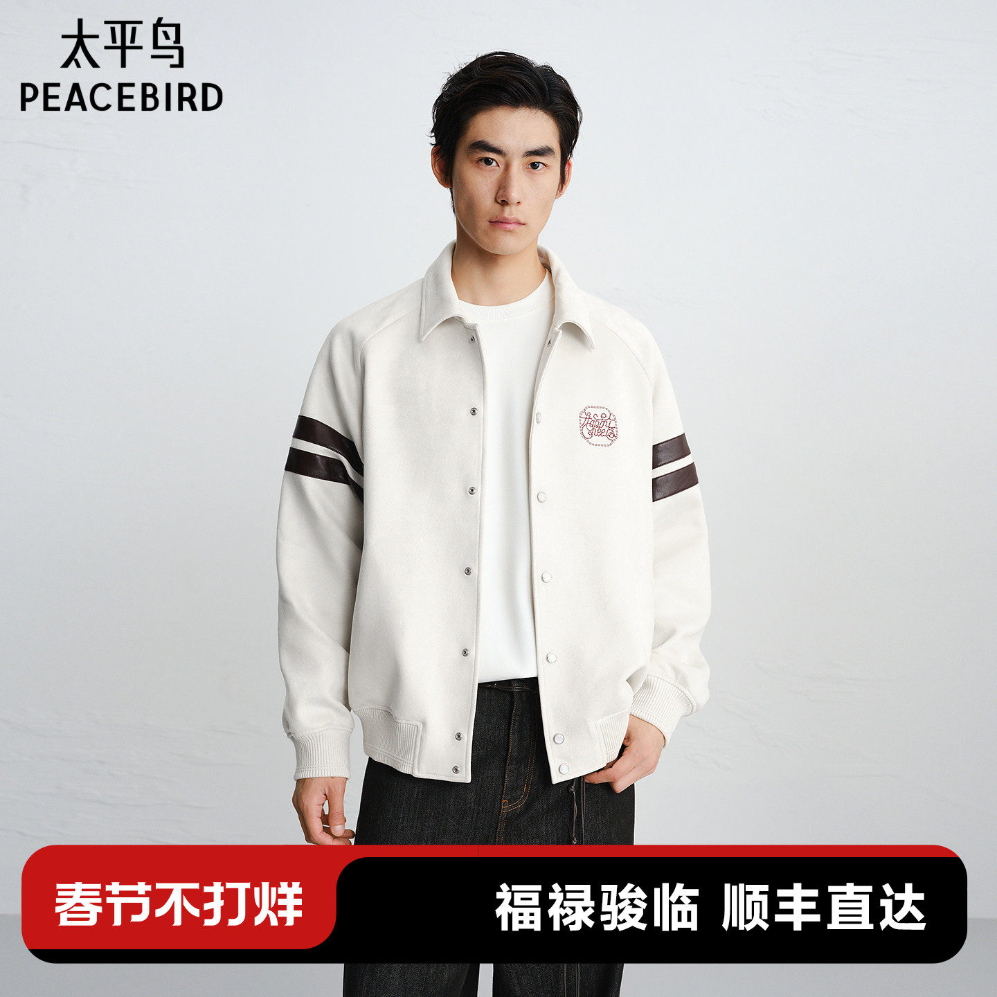 📚 【商场同款】太平鸟男装 潮流后背刺绣2026年新款夹克男B2BCG1104