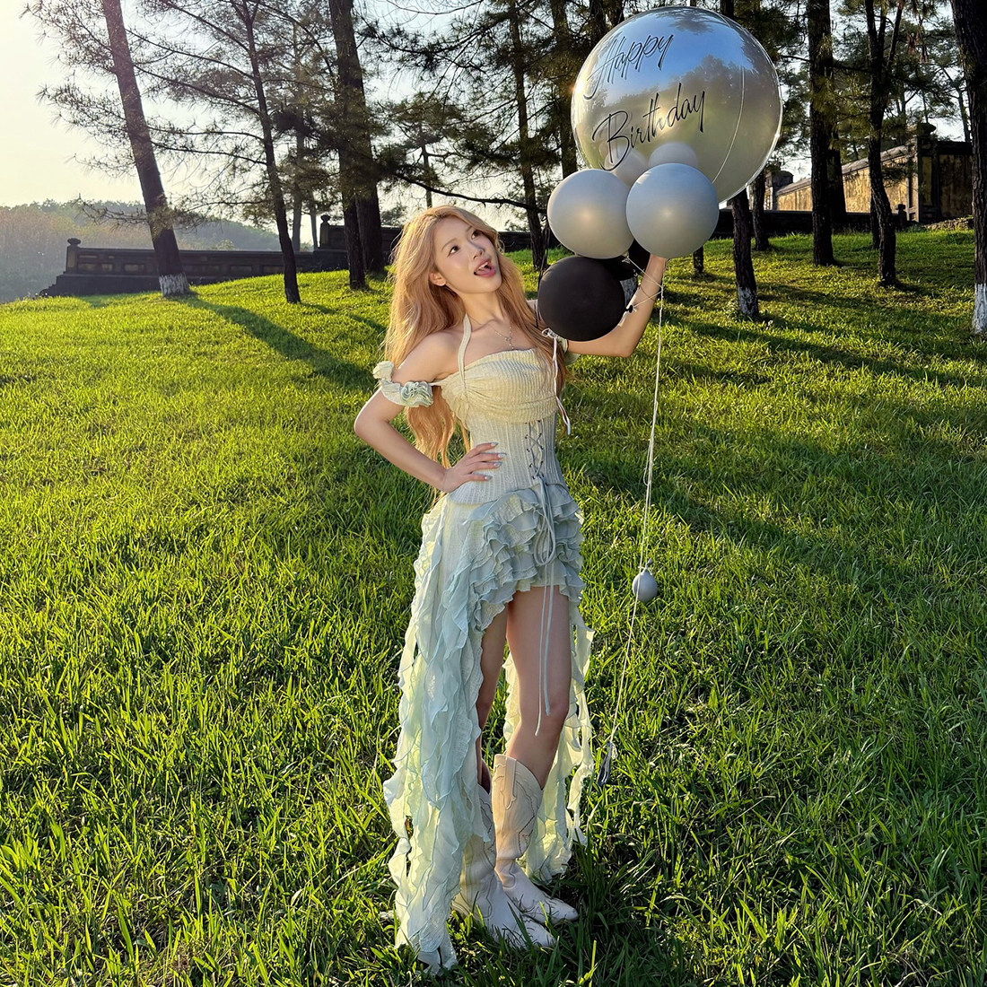 📚 KLIOU 明媚温柔飘逸感渐变色不规则抹胸连衣裙外搭掐腰系带腰封女