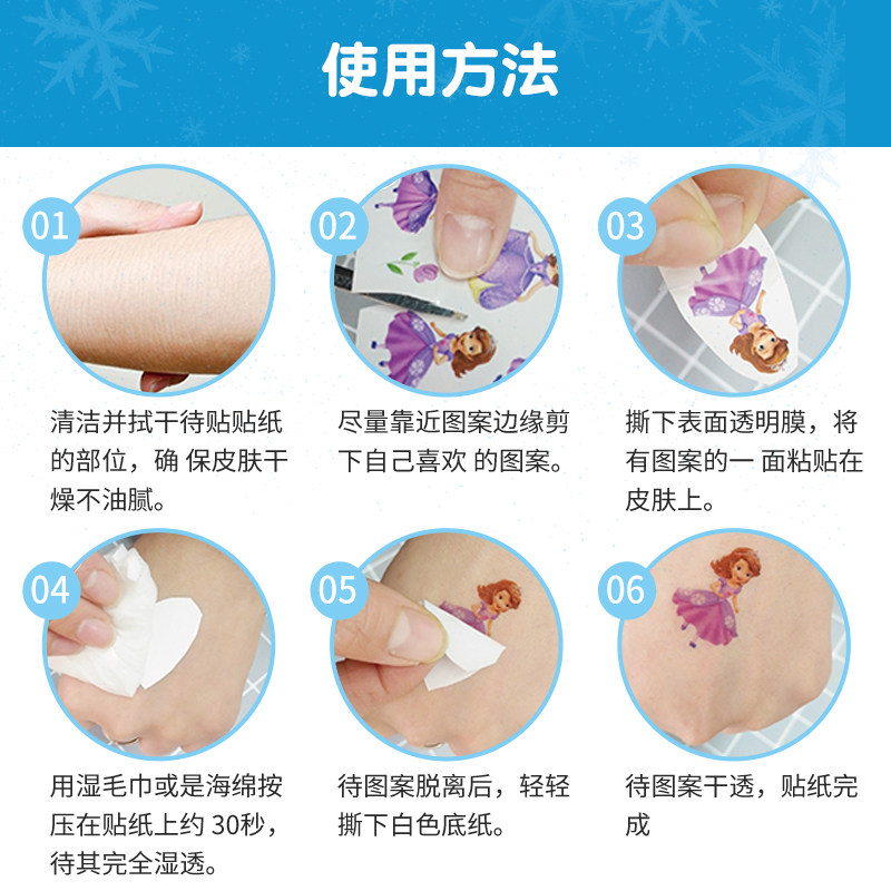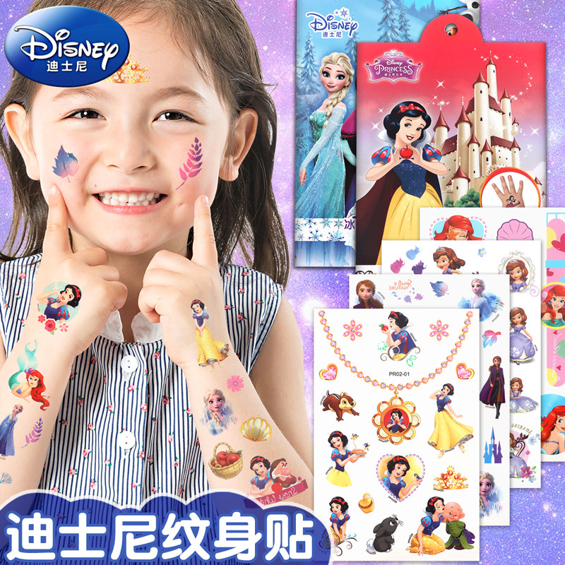 📚 卡通冰雪奇缘爱莎公主转印贴纸纹身贴儿童女孩水印印花水贴可爱无毒可洗透明小贴贴纸女装饰图案小礼物