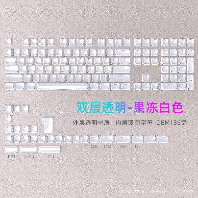 📚 跨境现货批发亚马逊果冻白键帽0EM高度小全套136键PC透明磁轴键盘