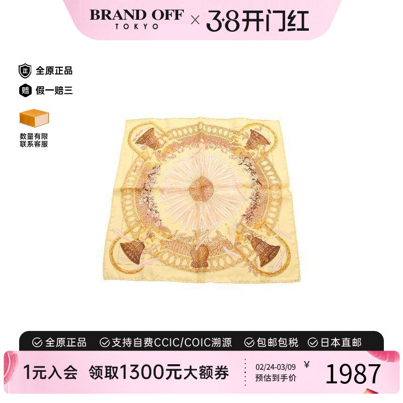 📚 中古Hermes爱马仕女A级95新scarf围巾丝绸围巾/丝巾黄色