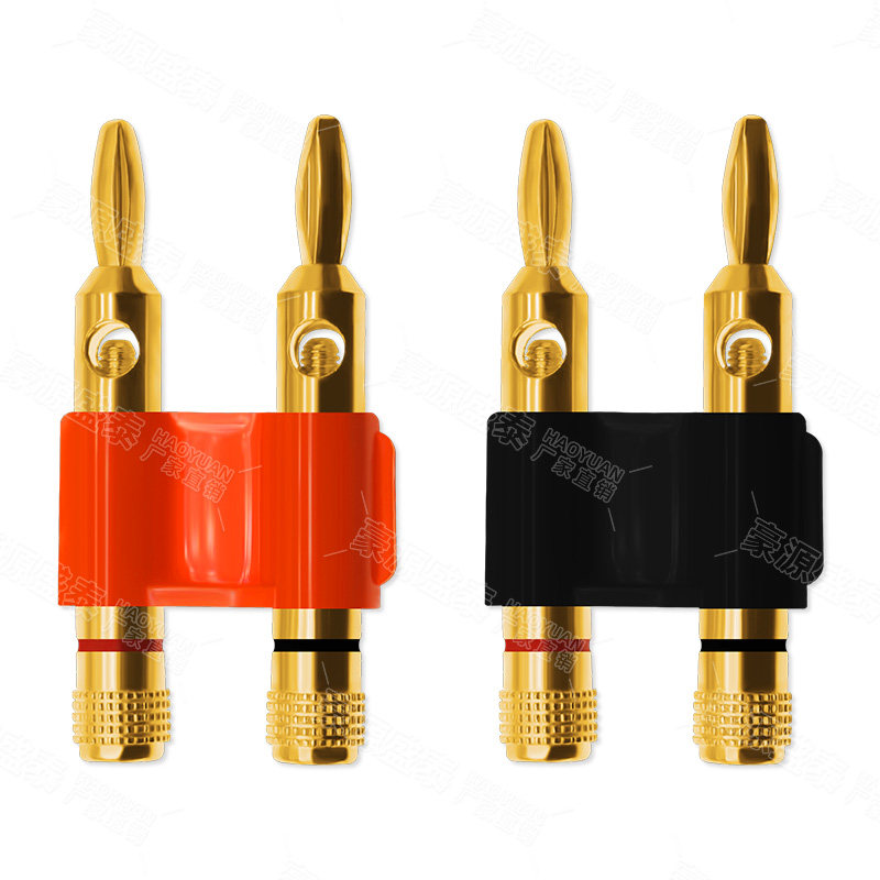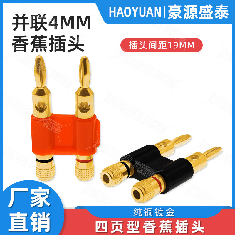 📚 纯铜镀金4mm香蕉插头 双排并联四叶香蕉插头音响喇叭转接线柱端子