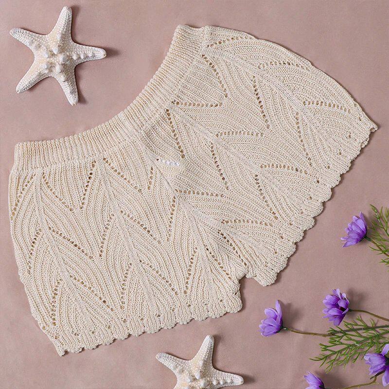 📚 女士钩花镂空抽绳宽松沙滩短裤Crochet Swimwear Cover Up Shorts