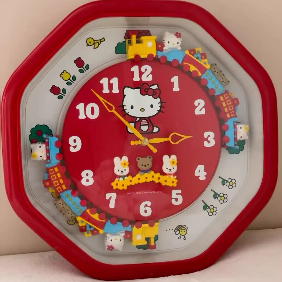 📚 小红书同款HelloKitty挂钟可爱小火车时钟家用客厅时钟表创意挂件