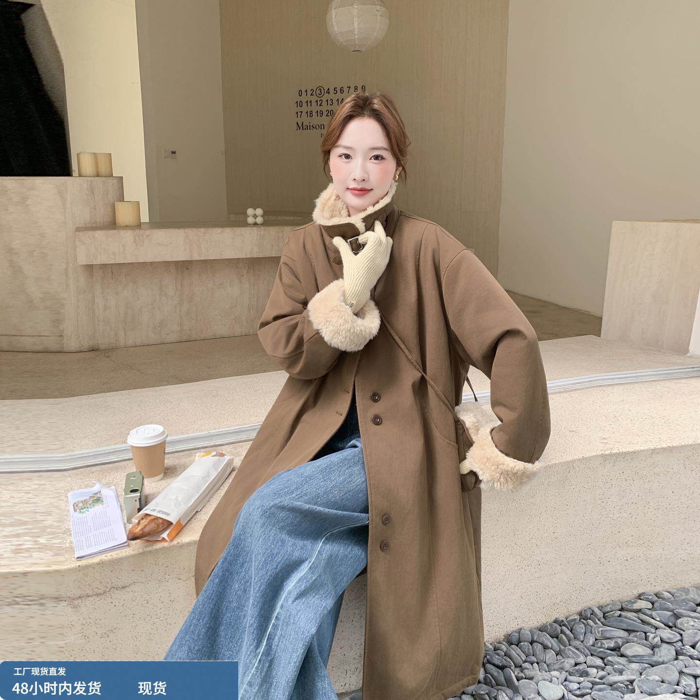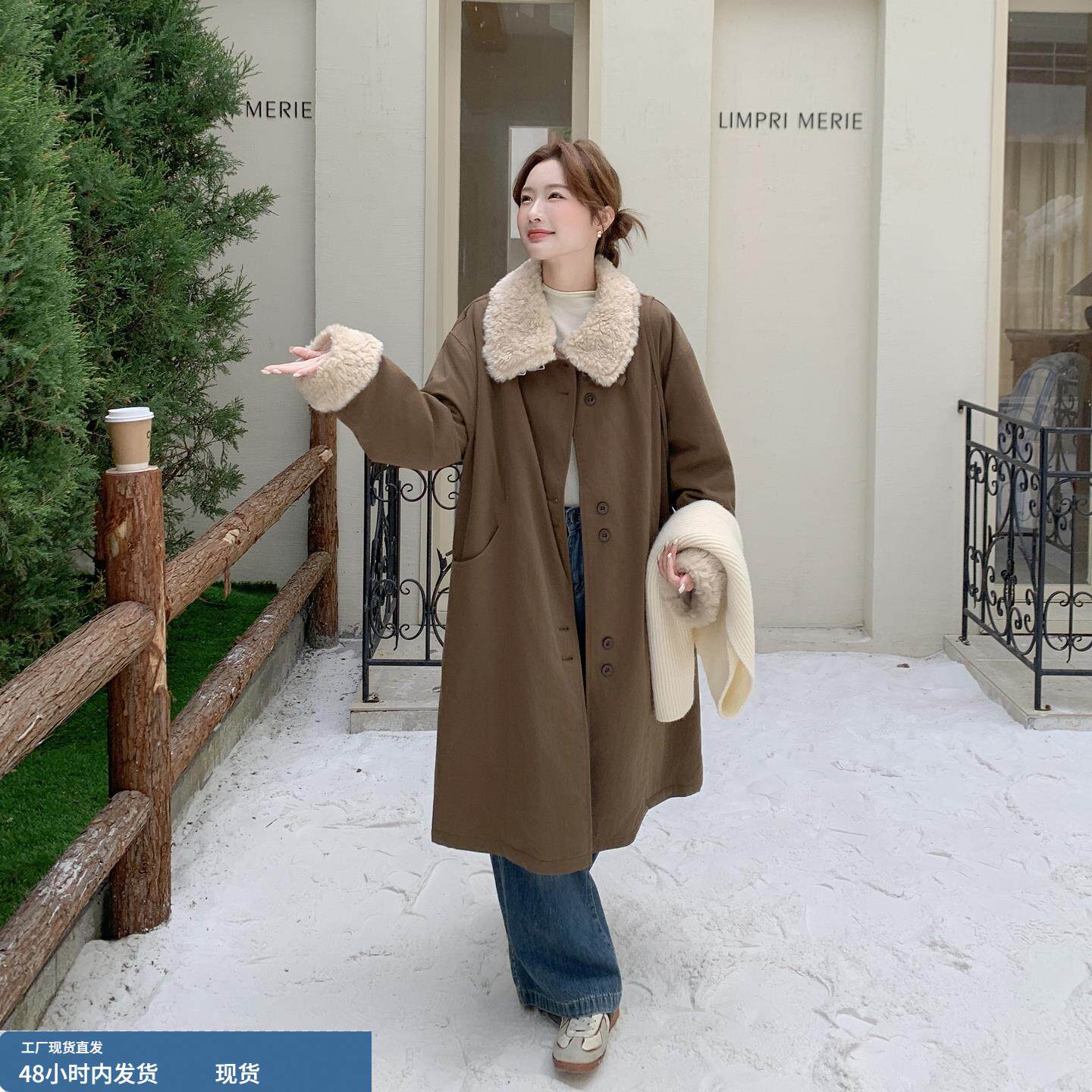 📚 咖色美拉德宽松慵懒风韩版派克服女秋冬2025新款长款加绒大衣外套