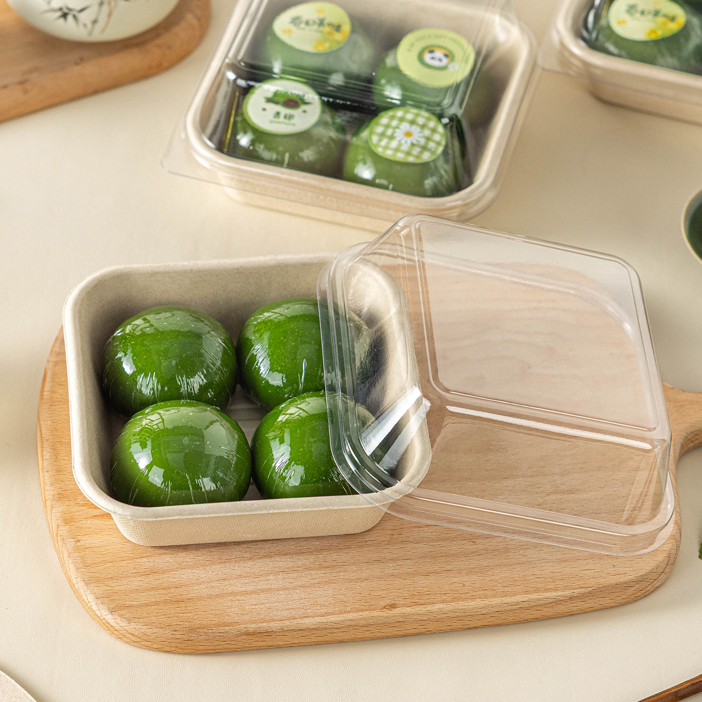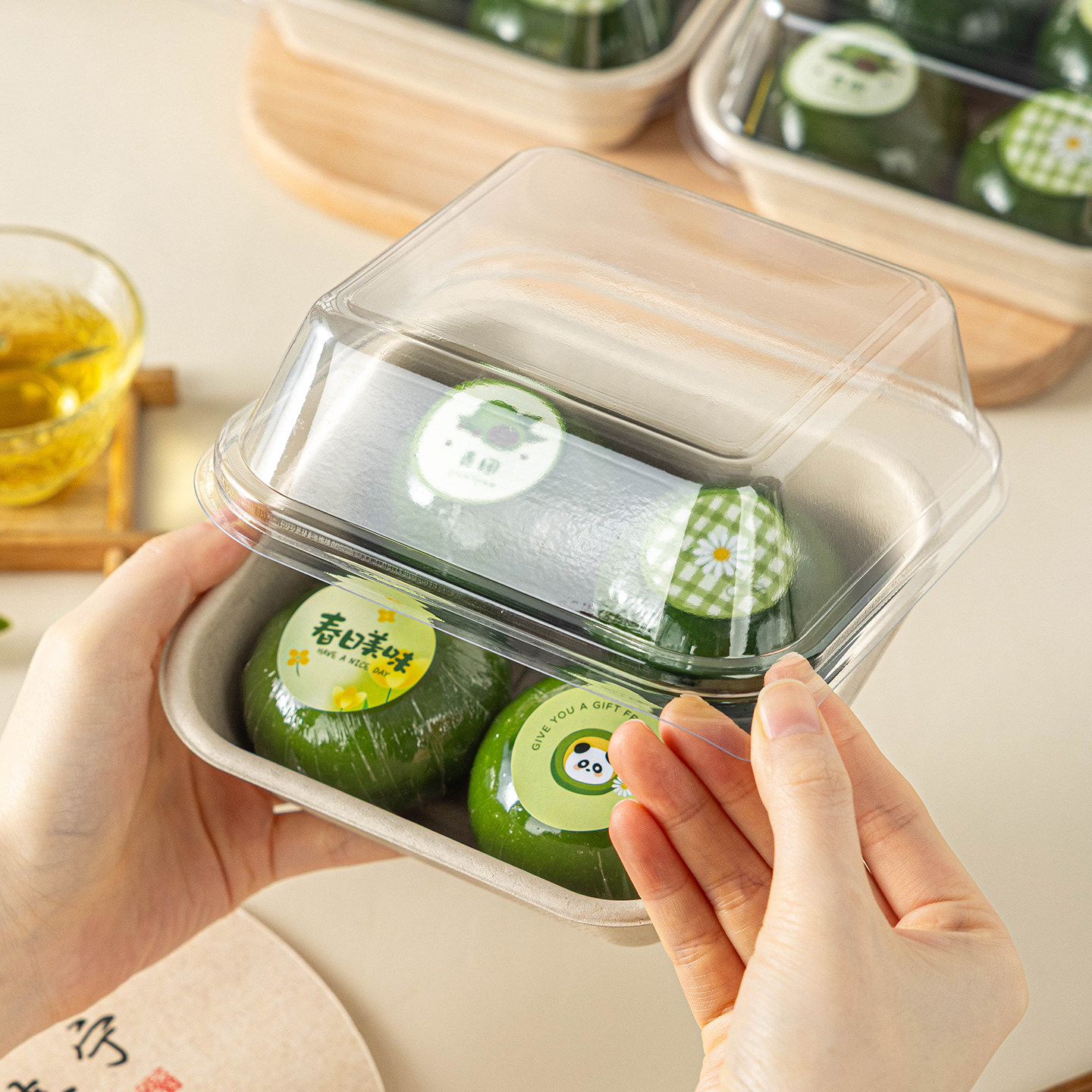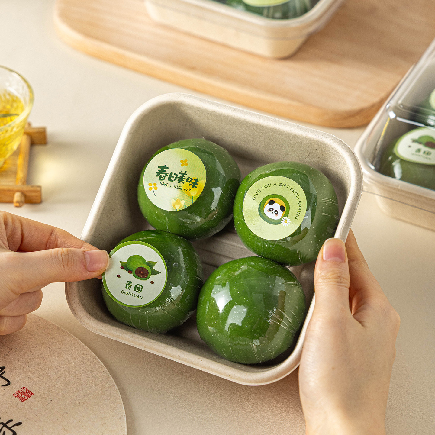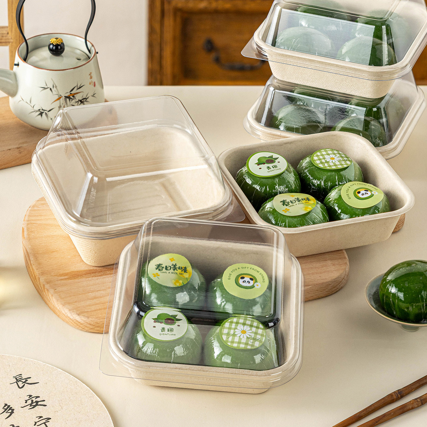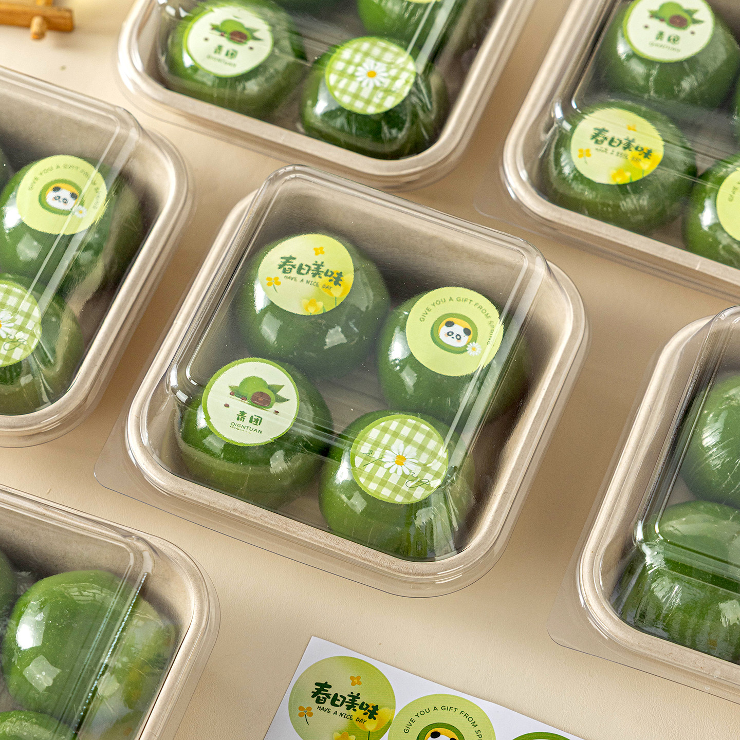 📚 青团包装盒子4个装四粒打包口味贴纸清明饼艾草粿纸浆便当礼透明