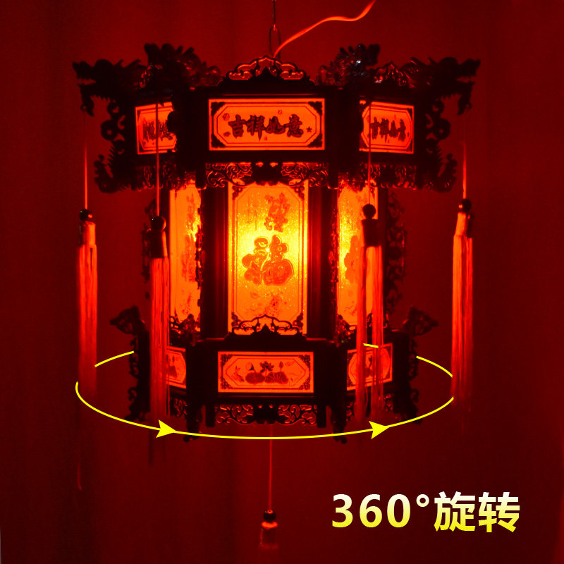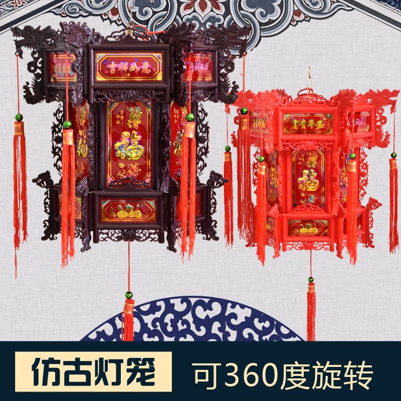 📚 中式仿古六角灯笼庭院阳台门厅寺院大红龙灯过年春节LED旋转吊灯