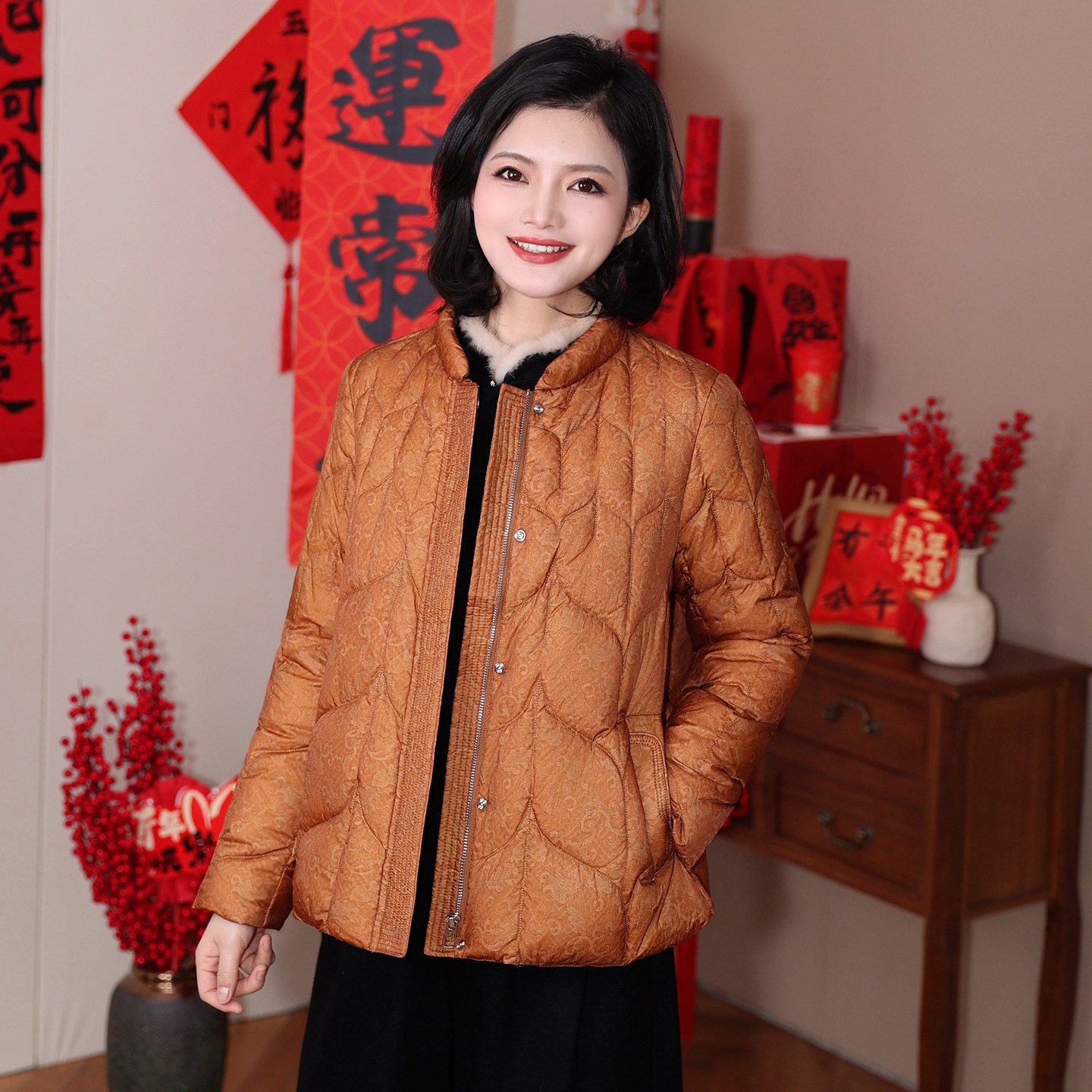 📚 【90鹅绒服】枫竺新中式立领炒色一手长羽绒服女2025冬季保暖外套