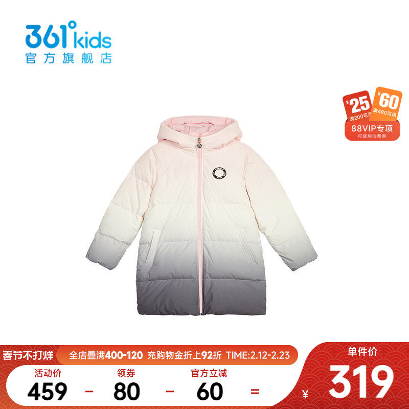 📚 【商场同款】361°童装女童保暖中长羽绒服2025冬季新款中大童