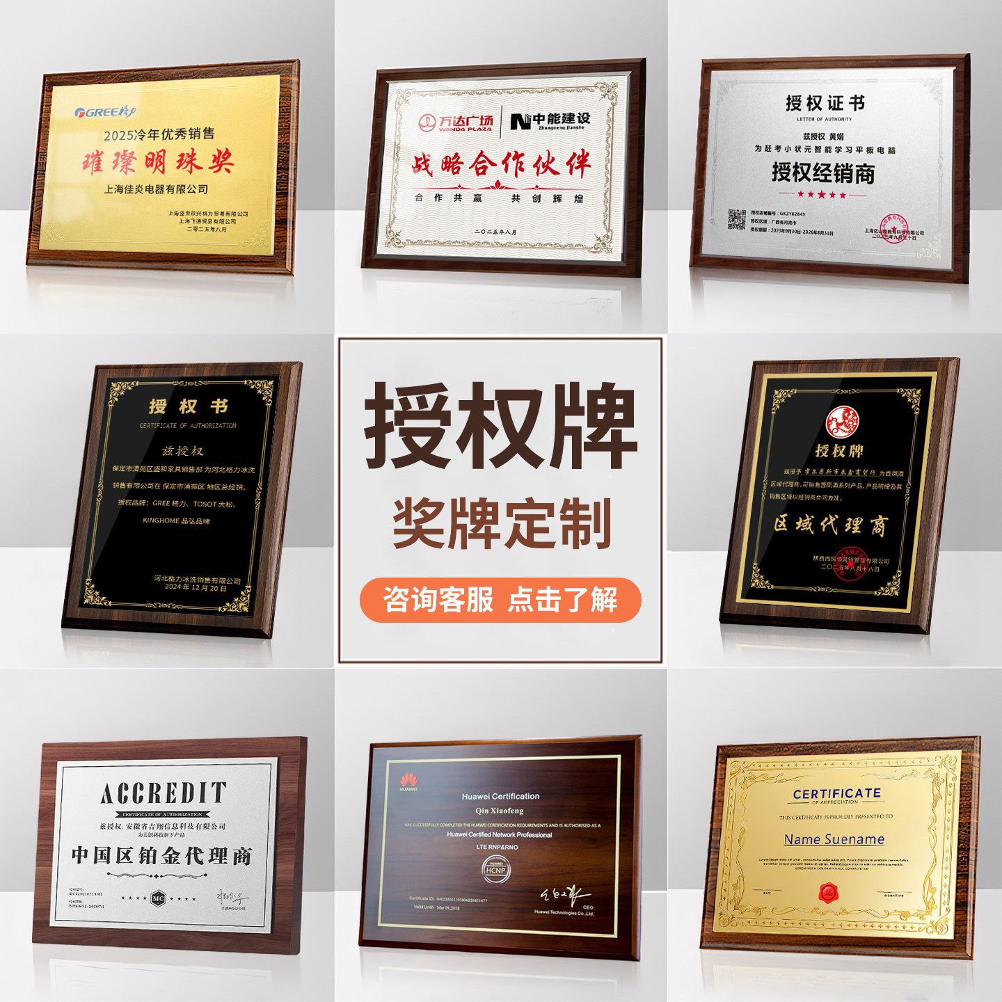 📚 奖牌牌匾定制高端授权牌定做证书品牌经销商代理商授权书授牌木质